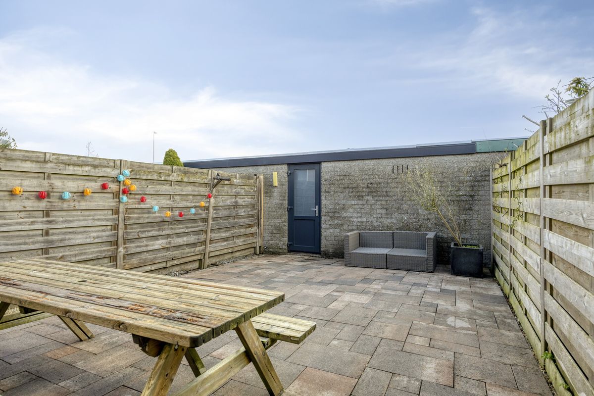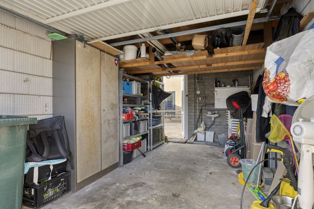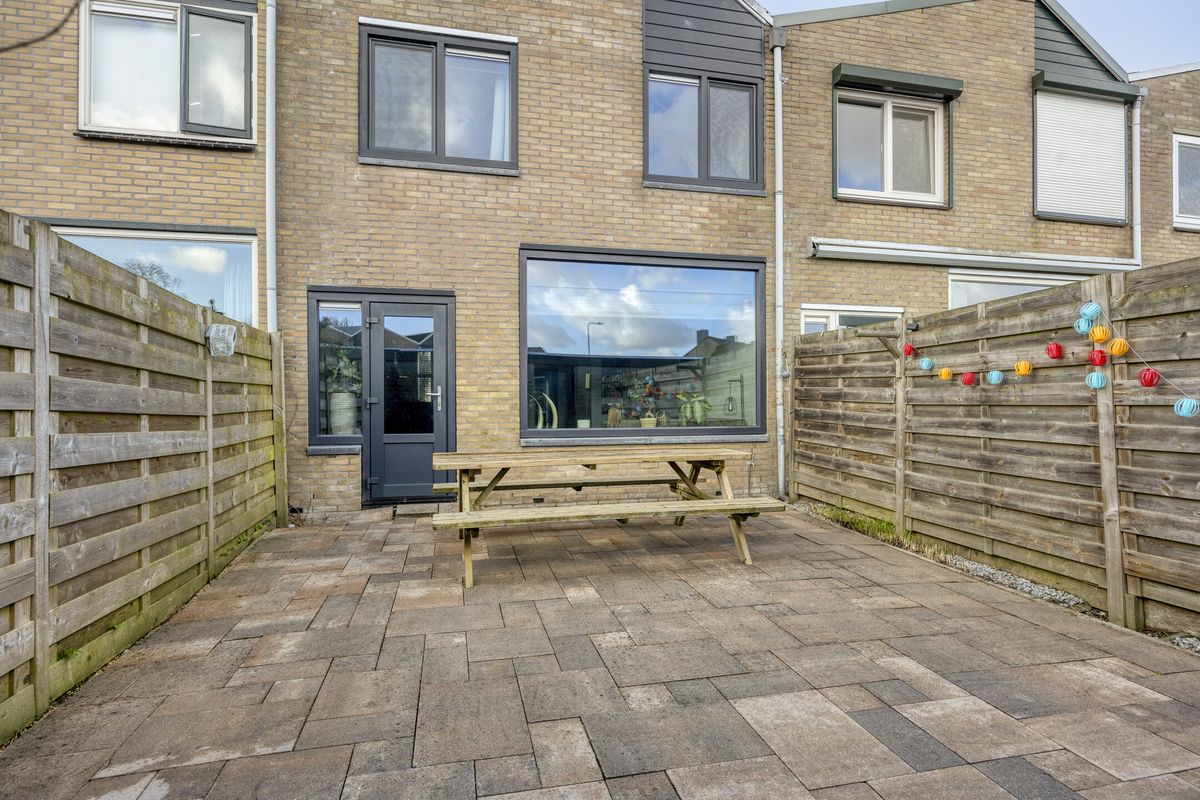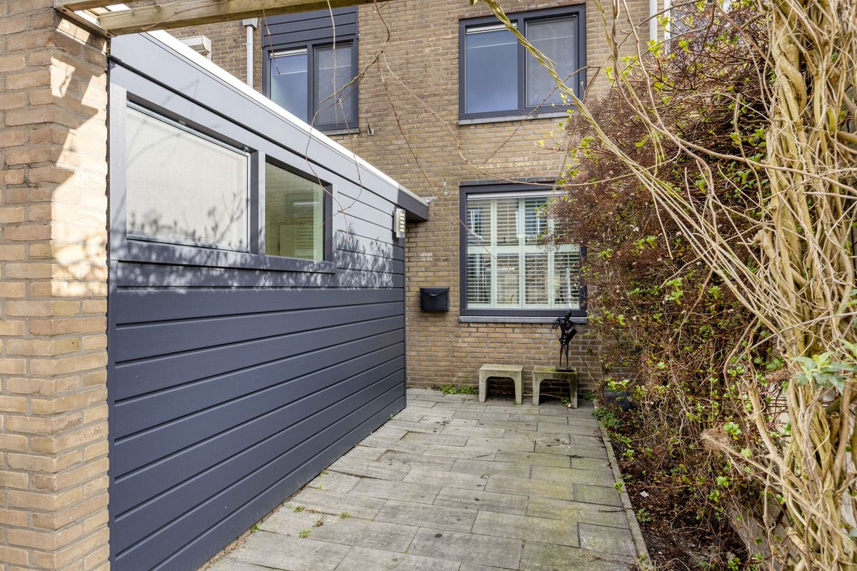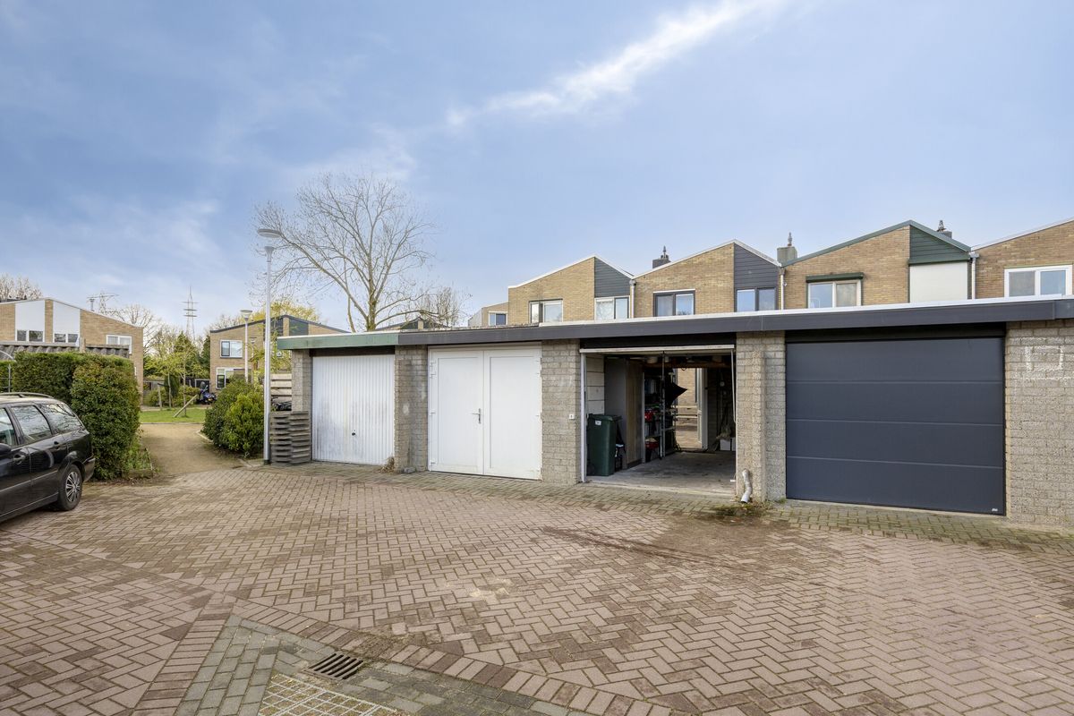 Buiten ervaar je de rust van de omgeving: het huis ligt aan een rustig voetpad, een plek waar je in alle stilte kunt genieten van je ochtendkoffie of een avondwandeling. De achtertuin gaat naadloos over in een garage, een praktische extra voor je auto, fietsen of gewoon als handige opslagruimte.