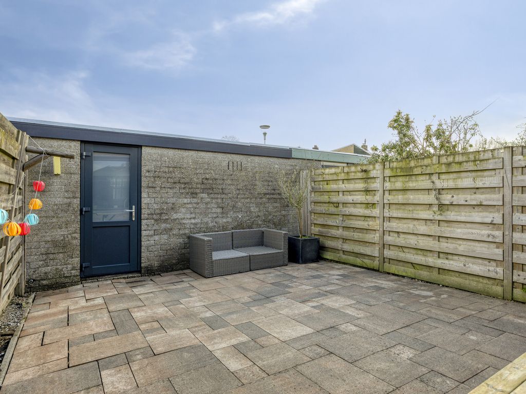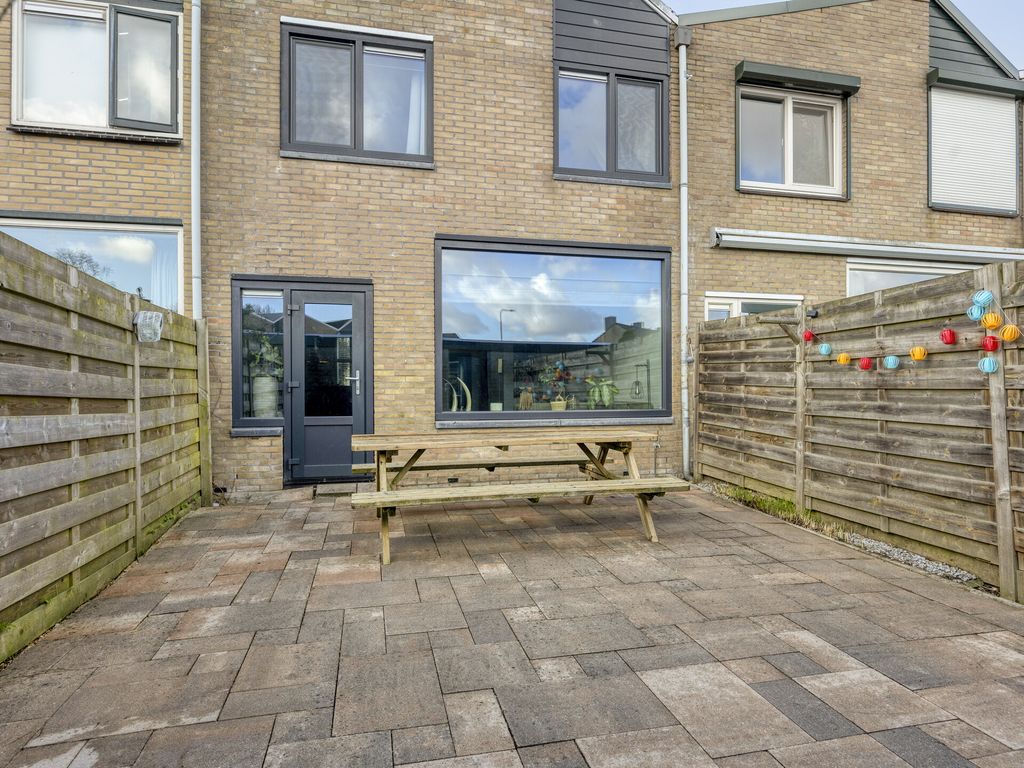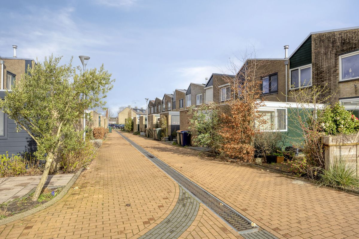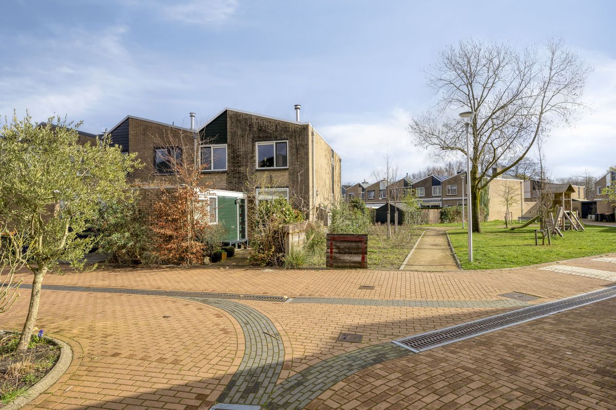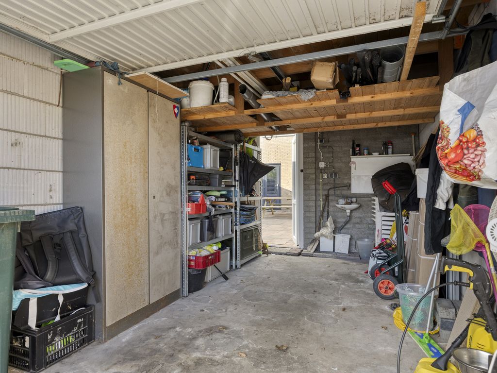 Buiten ervaar je de rust van de omgeving: het huis ligt aan een rustig voetpad, een plek waar je in alle stilte kunt genieten van je ochtendkoffie of een avondwandeling. De achtertuin gaat naadloos over in een garage, een praktische extra voor je auto, fietsen of gewoon als handige opslagruimte.