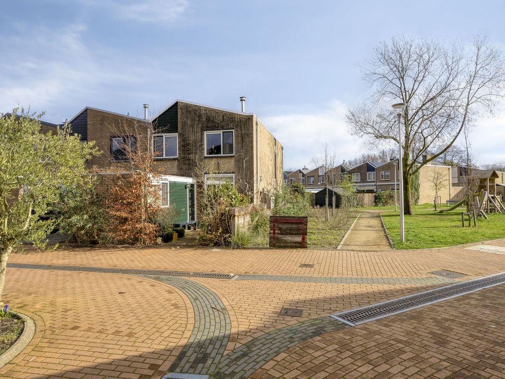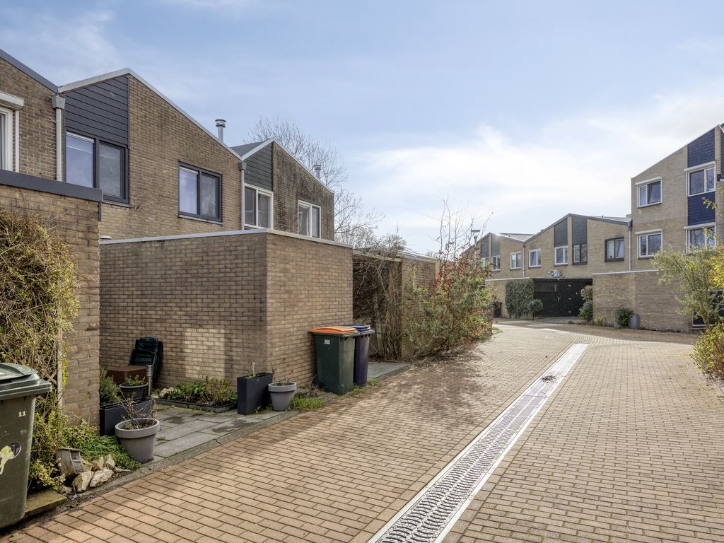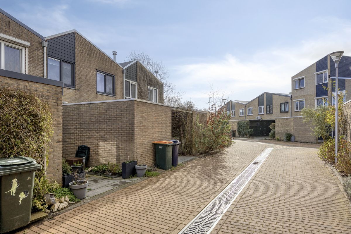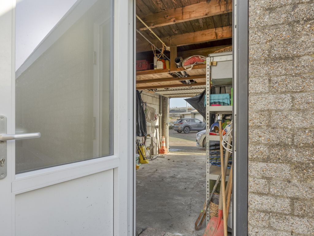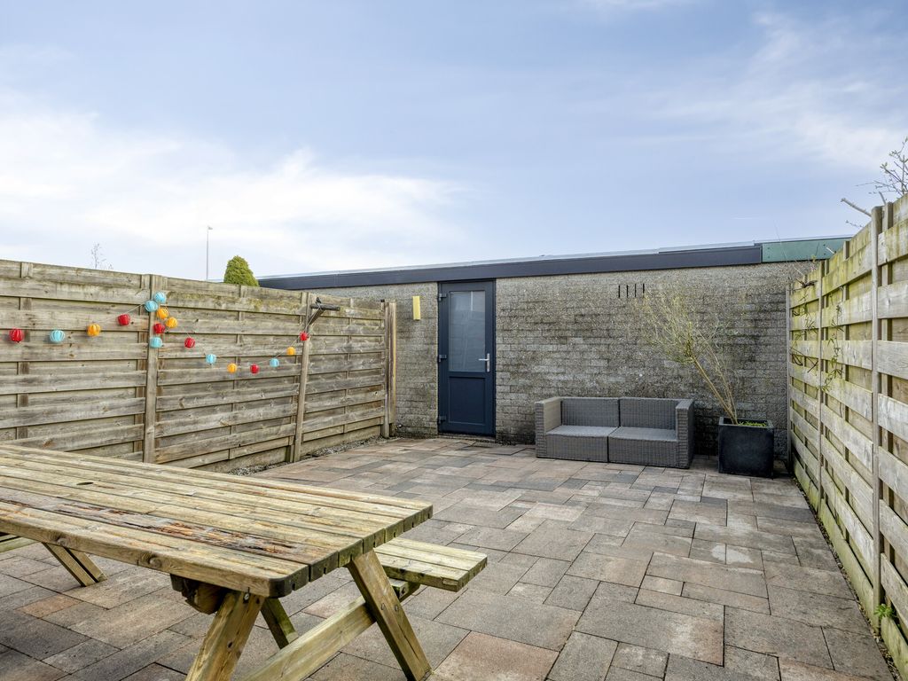Buiten ervaar je de rust van de omgeving: het huis ligt aan een rustig voetpad, een plek waar je in alle stilte kunt genieten van je ochtendkoffie of een avondwandeling. De achtertuin gaat naadloos over in een garage, een praktische extra voor je auto, fietsen of gewoon als handige opslagruimte.