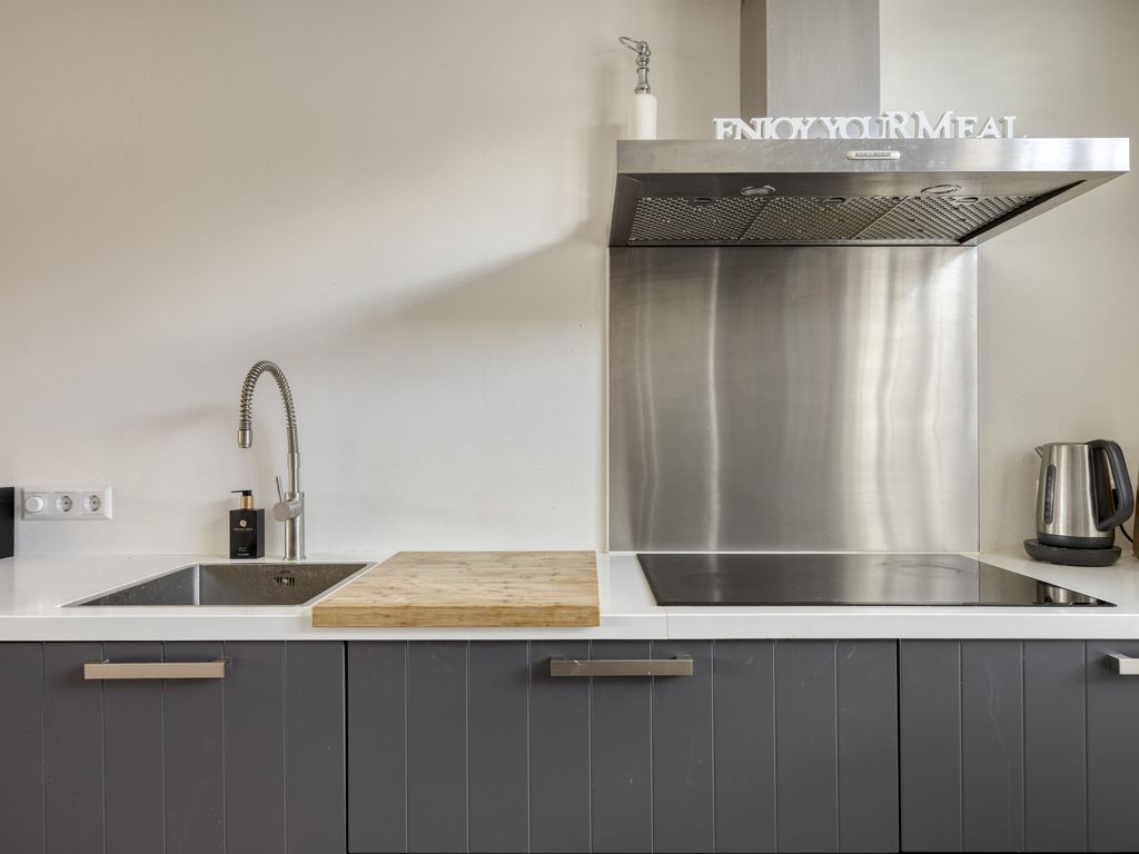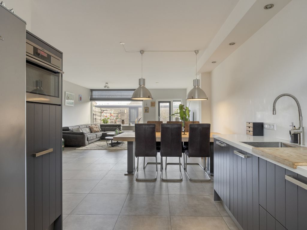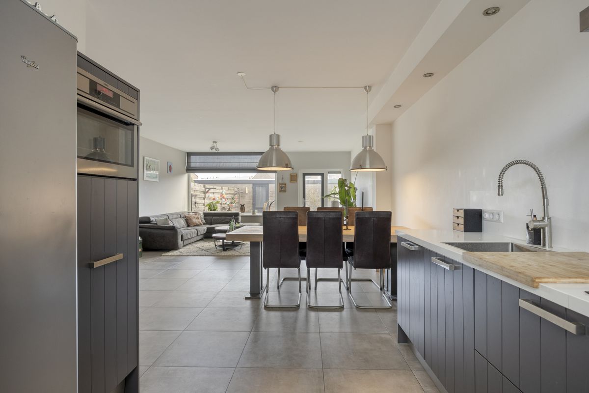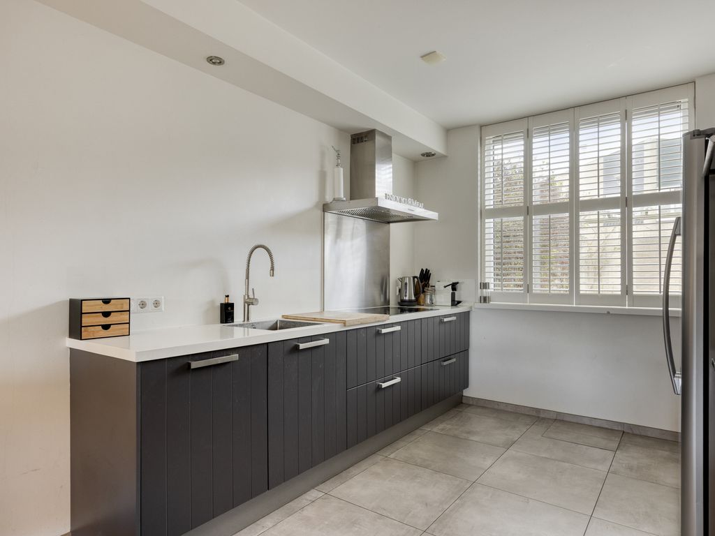 - Open keuken (ca. 3.07 m. x 2.86 m.) is gesitueerd in een rechte opstelling en voorzien van een inductiekookplaat, combi-oven, combimagnetron, vaatwasser en afzuigkap. De keuken is gelegen aan de voorzijde van de woning.