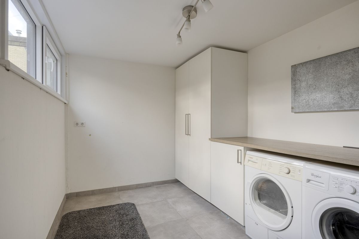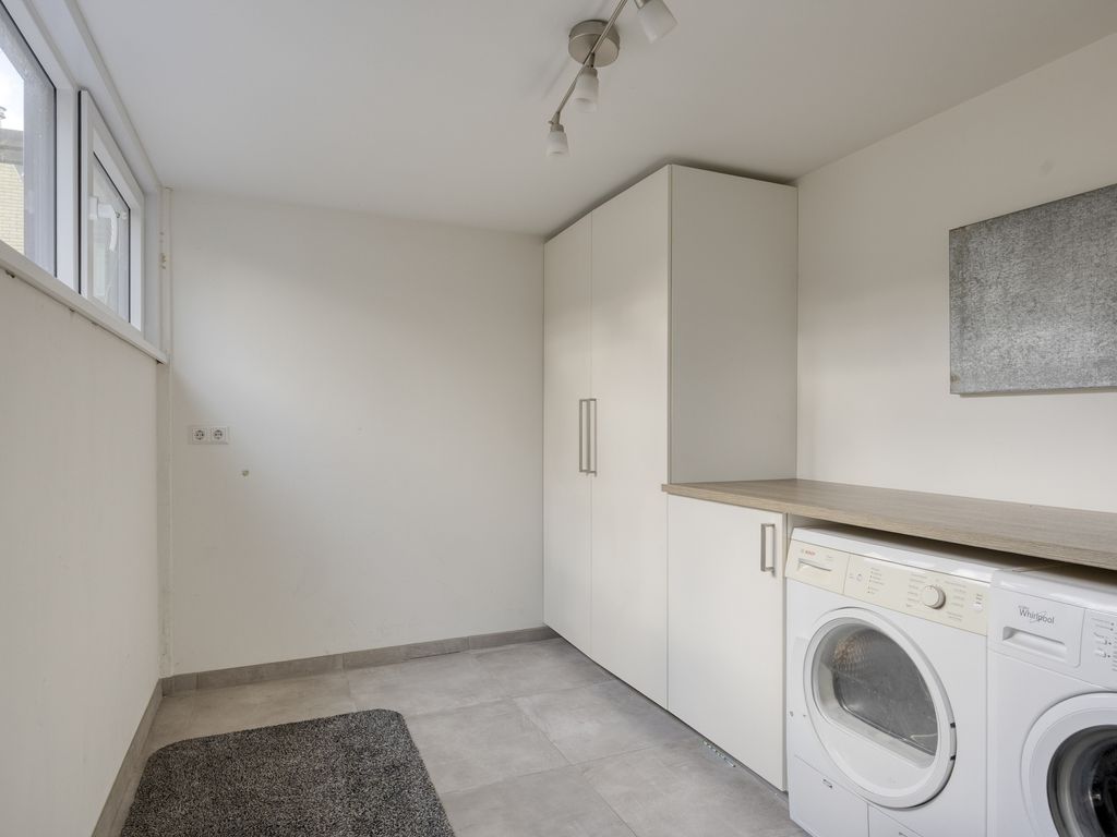 - Bijkeuken (ca. 3.63 m. x 2.39 m.) voorzien van een aansluiting voor de wasmachine en droger.