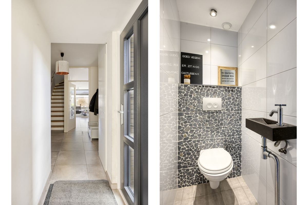 - Entree / hal voorzien van meterkast, toiletruimte en toegang tot de bijkeuken en woonkamer.