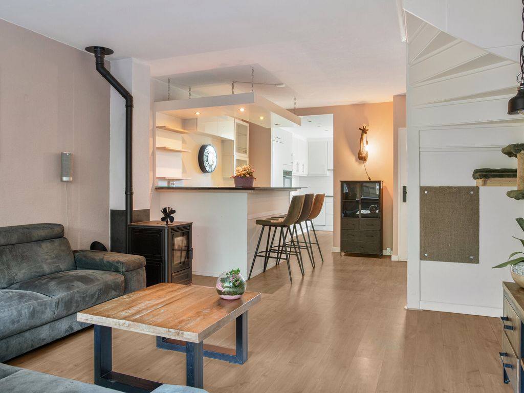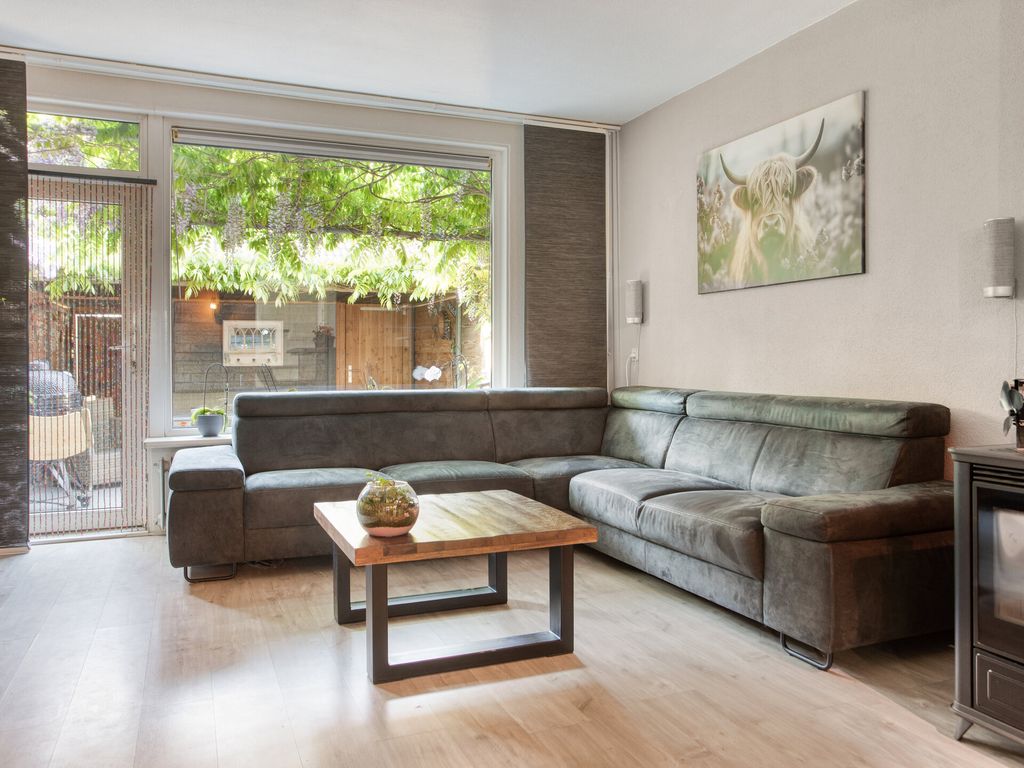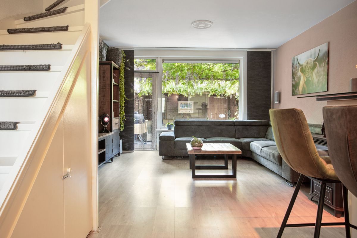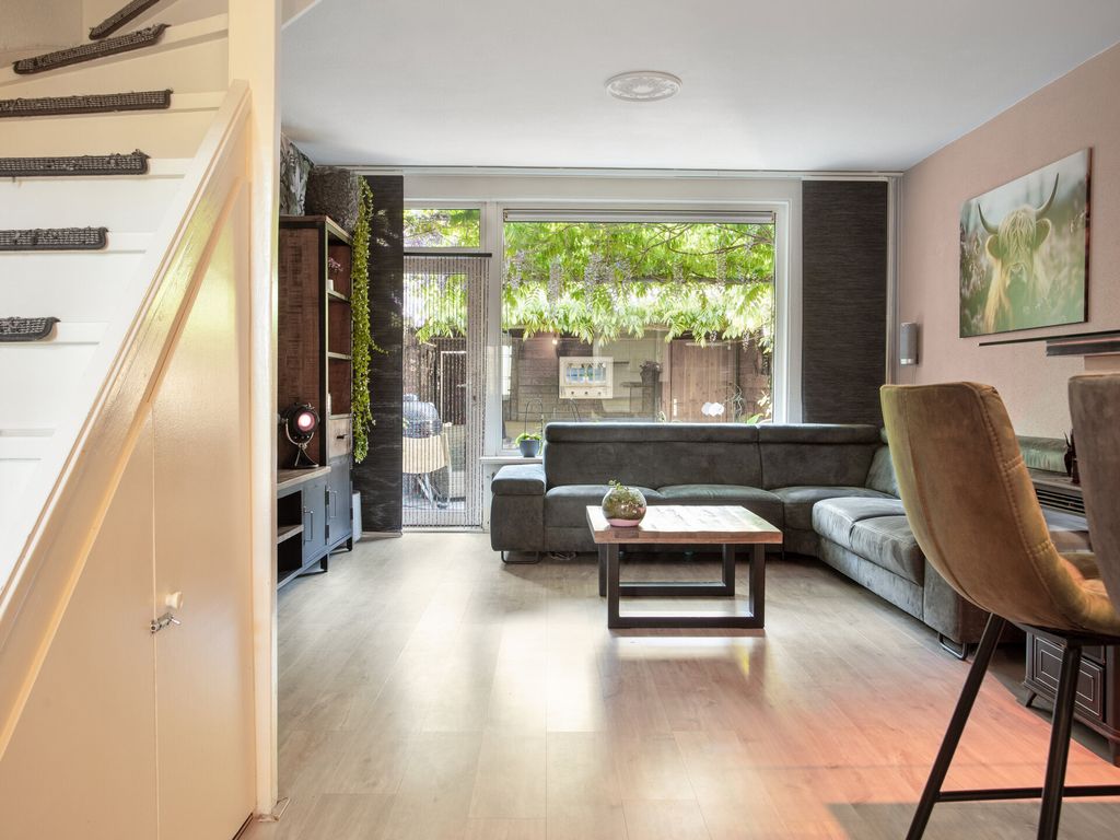 - Woonkamer (ca. 7.11 m. x 4.12 m.) met trapopgang naar de eerste verdieping. Middels een enkele deur heb je toegang tot de achtertuin.