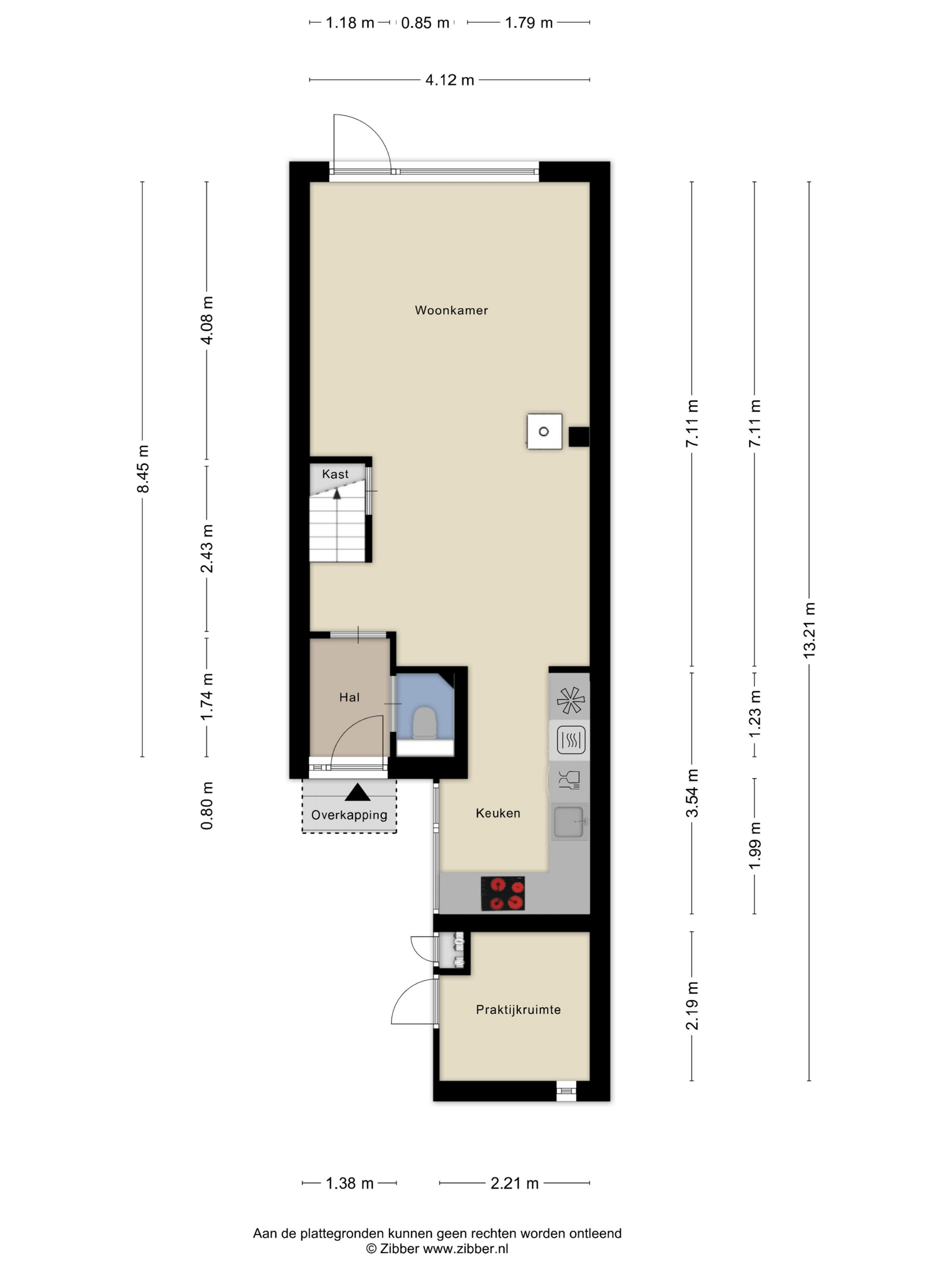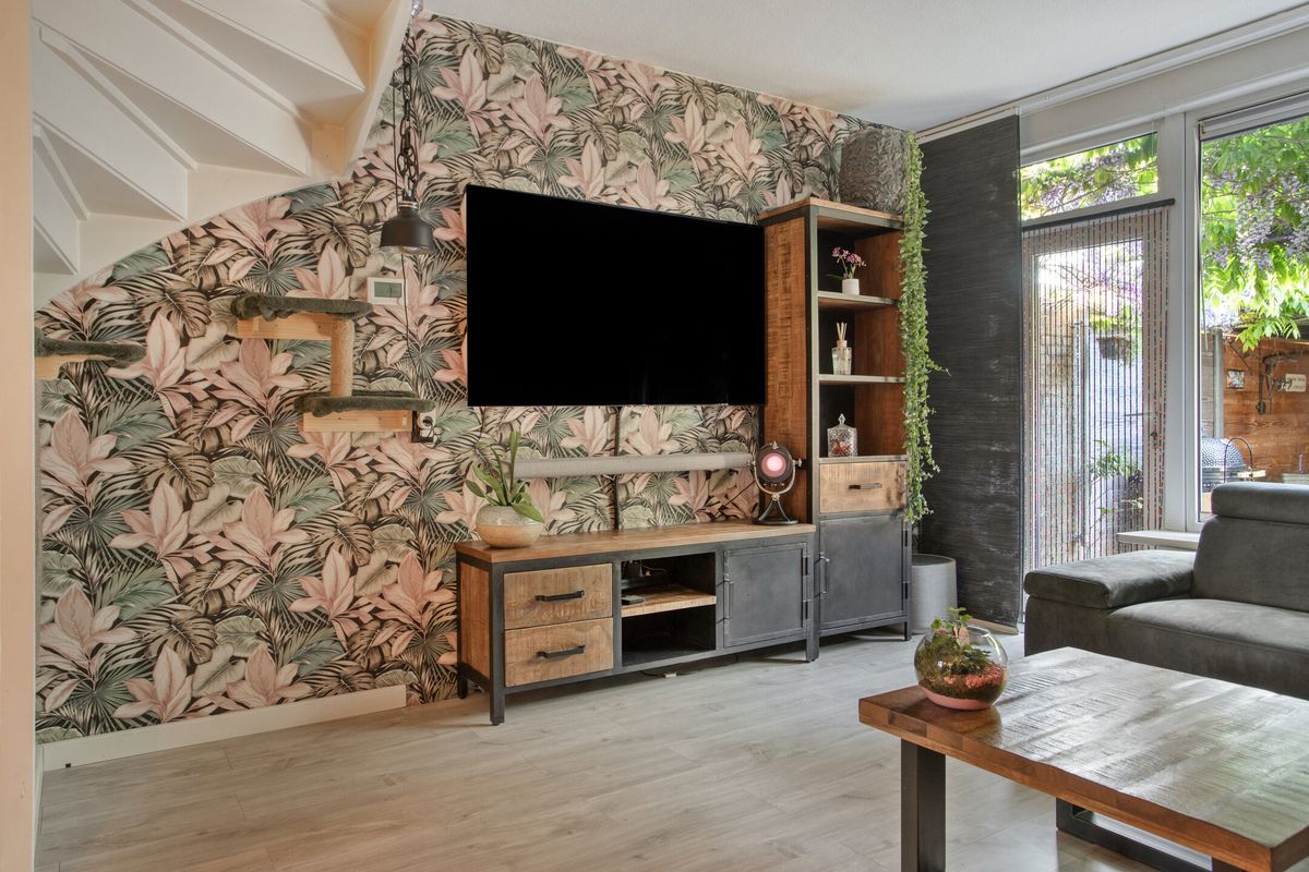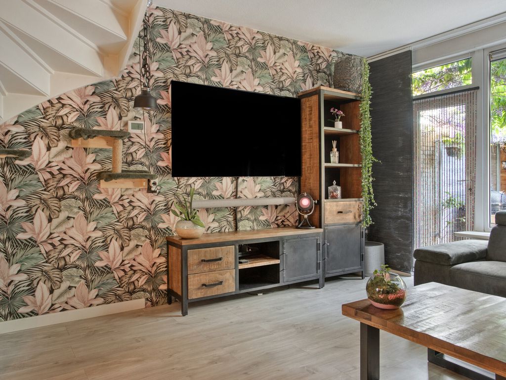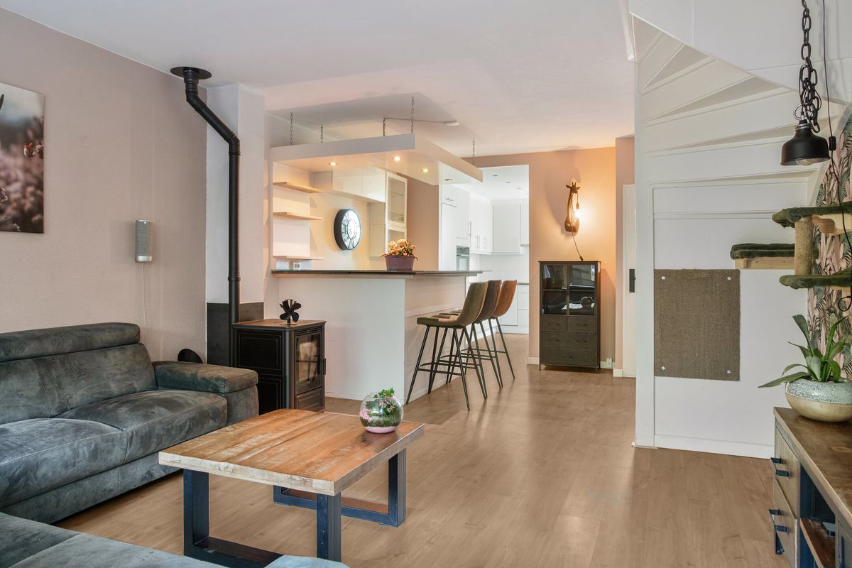 - Woonkamer (ca. 7.11 m. x 4.12 m.) met trapopgang naar de eerste verdieping. Middels een enkele deur heb je toegang tot de achtertuin.