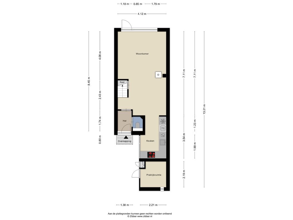 - Berging/praktijkruimte (ca. 2.21 m. x 2.19 m.) gelegen aan de voorzijde van de woning en voorzien van de meterkast.