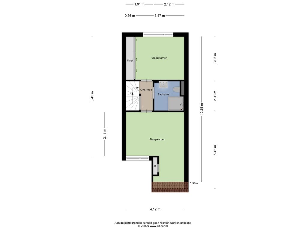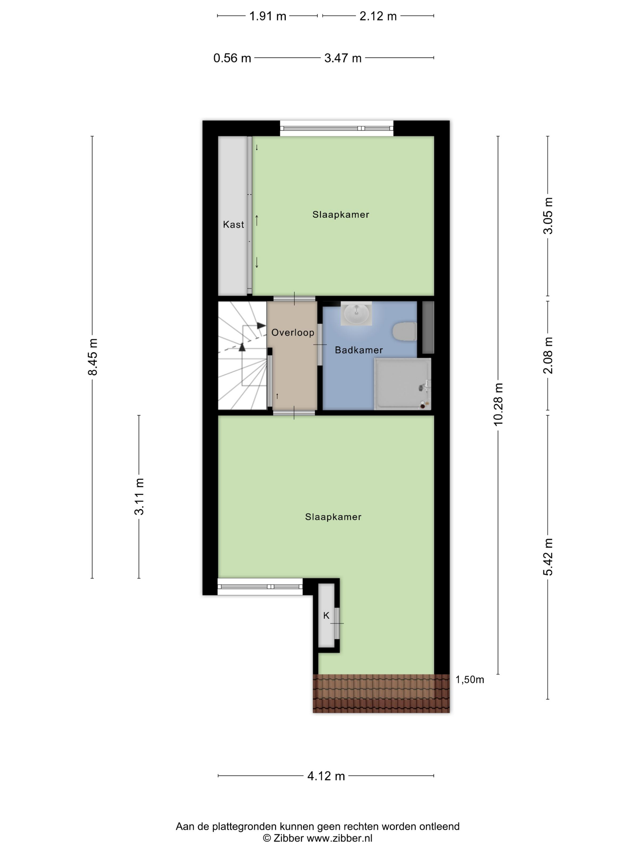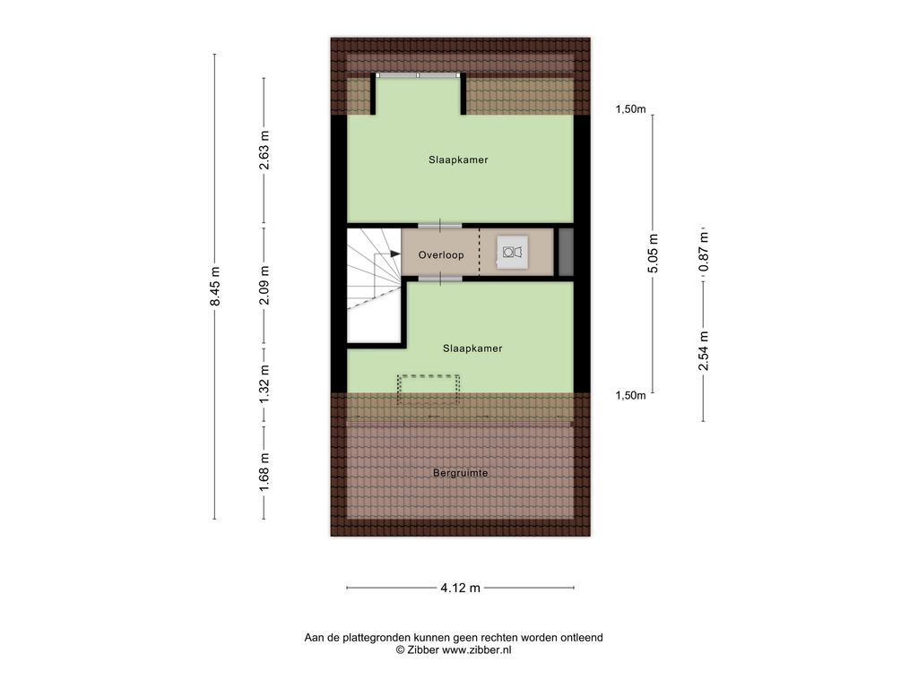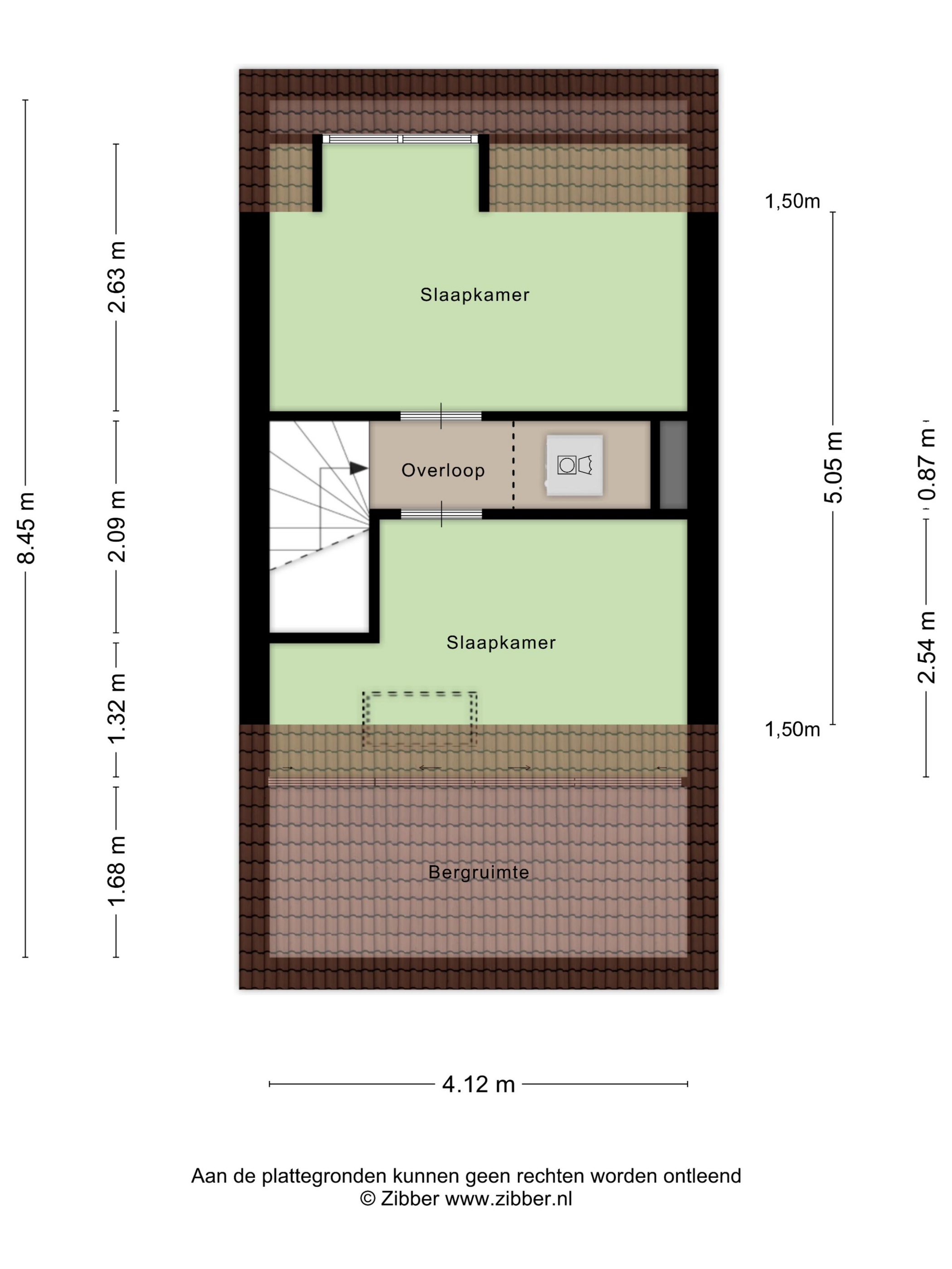 - Slaapkamer IV (ca. 4.12 m. x 2.63 m.) gelegen aan de achterzijde van de woning en voorzien van een dakkapel.