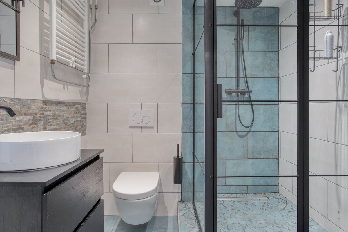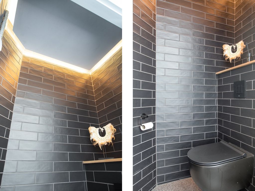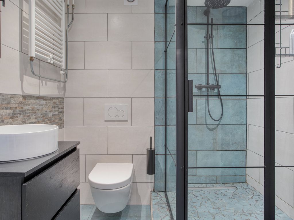 - Toilet (ca. 1.23 m. x 0.85 m.) voorzien van een zwevend toilet.