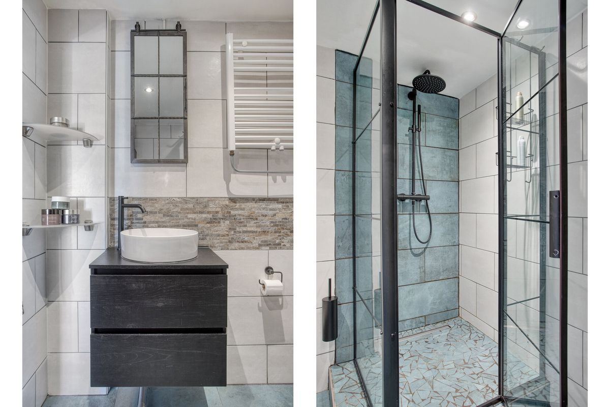 - Badkamer (ca. 2.12 m. x 2.08 m.) gelegen in het midden van de woning en voorzien van een douche, toilet en wastafel met meubel.