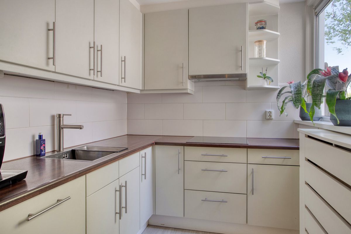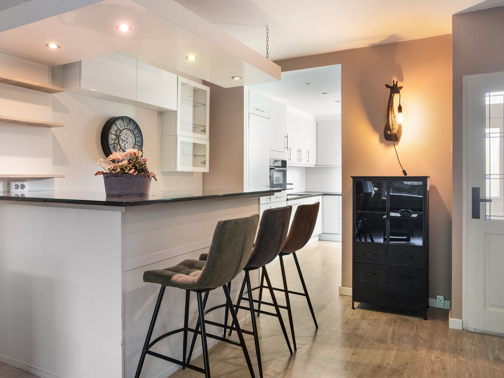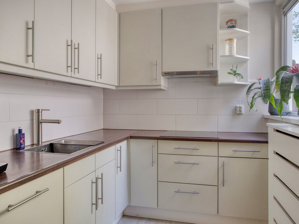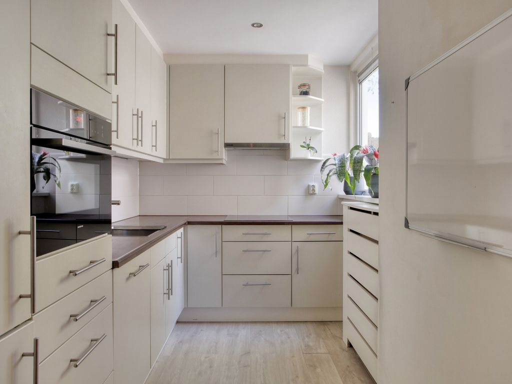- Open keuken (ca. 3.54 m. x 2.21 m.) is gesitueerd in een hoek vormige opstelling en voorzien van een koelkast/vriezer, inductiekookplaat, afzuigkap, vaatwasser en combi-oven.