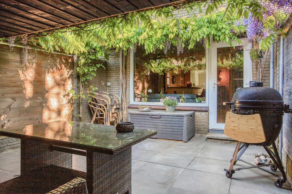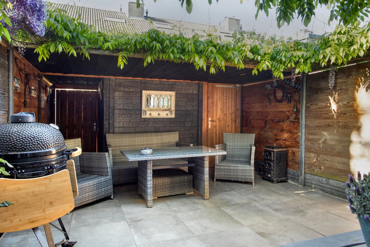 De tuin vormt een echt verlengstuk van de woning. Hier leef je buiten zoals je binnen gewend bent: ontspannen en comfortabel. De overkapping maakt het extra prettig, zodat je al snel beschut en sfeervol buiten zit, ongeacht het weer.