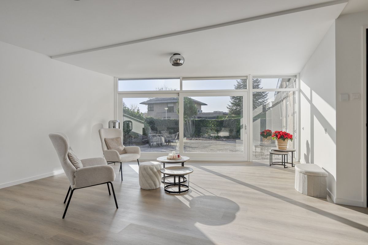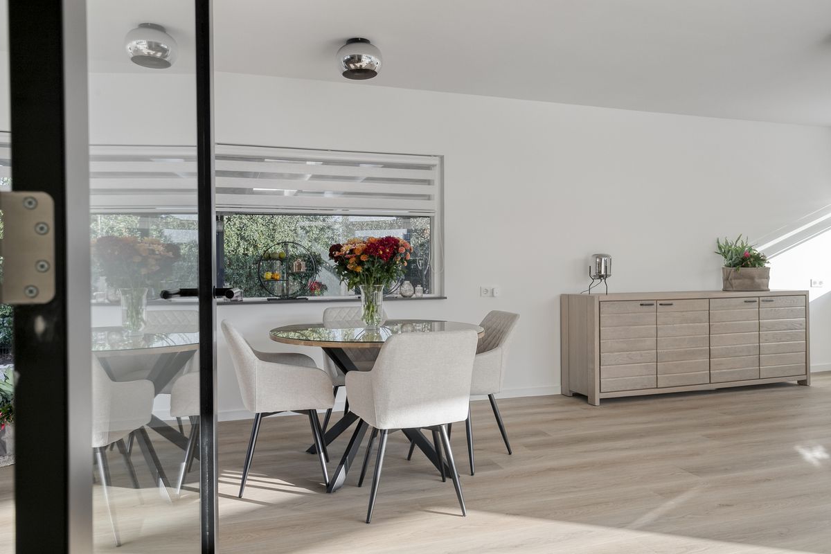 Buiten is het minstens net zo prettig. De tuin ligt beschut rondom de woning, waardoor je op elk moment van de dag een plekje vindt om lekker te zitten. En met een carport voor vier auto’s hoef je je over parkeren echt nooit zorgen te maken.