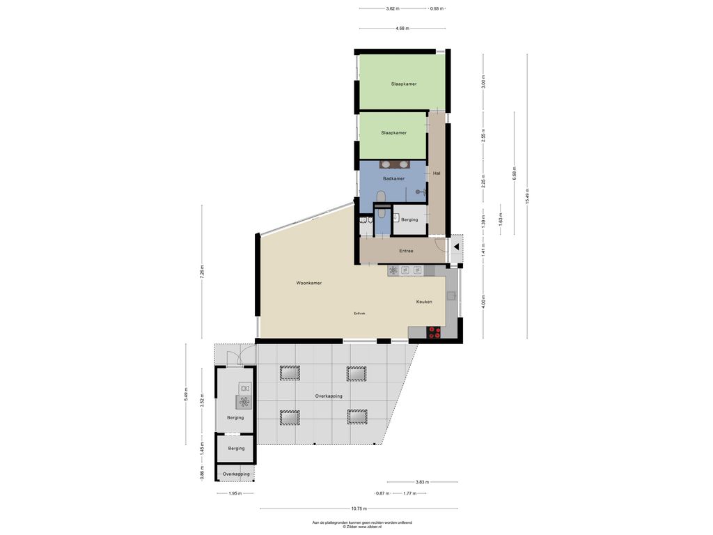 - Berging II (ca. 1.95 m. x 1.45 m.).