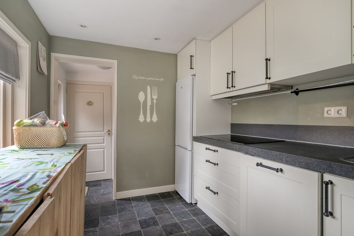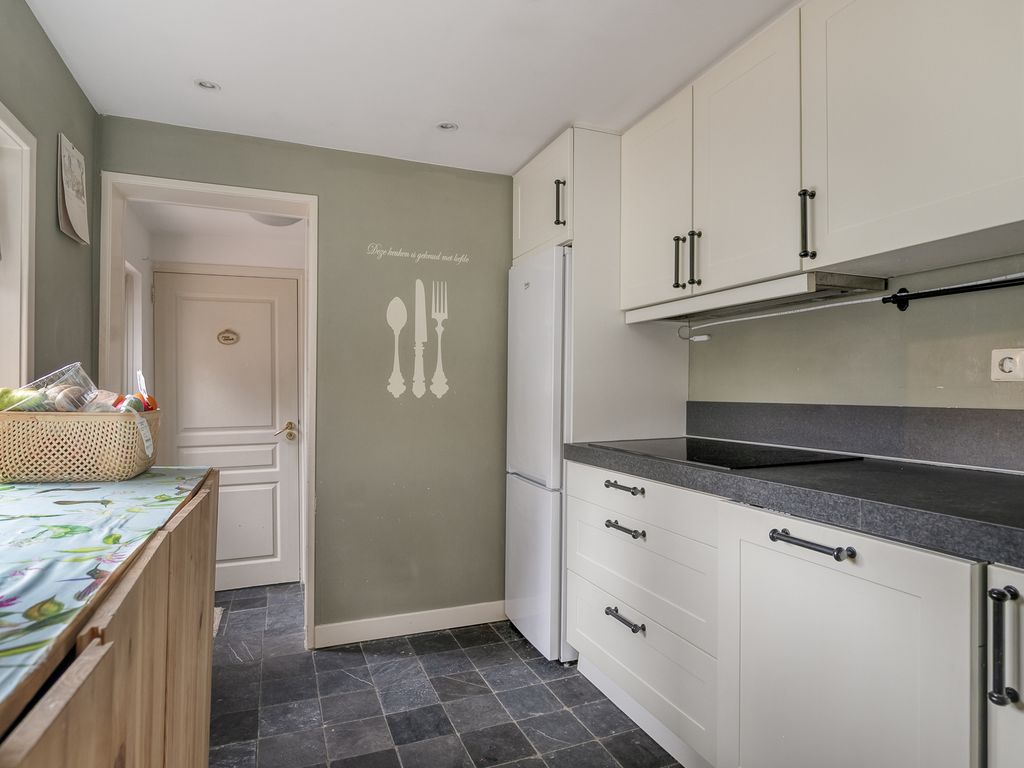 - Half open keuken (ca. 2.59 m. x 2.37 m.) is gesitueerd in een rechte opstelling en voorzien van aan kookplaat, vaatwasser en afzuigkap. Vanuit de keuken heb je toegang tot de tussenhal. En vanuit daar heb je toegang tot de toilet en badkamer.