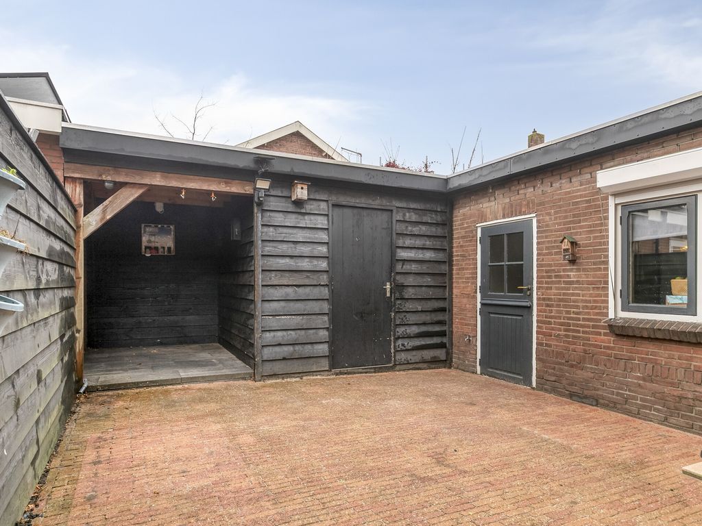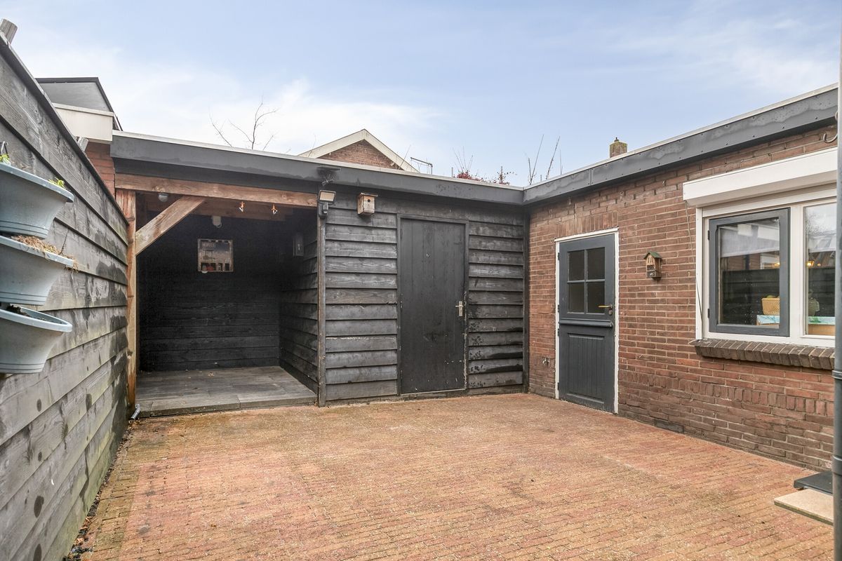 - De achtertuin is gelegen op het Zuidoosten en is voorzien van een ruime houten berging met overkapping.