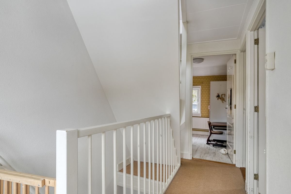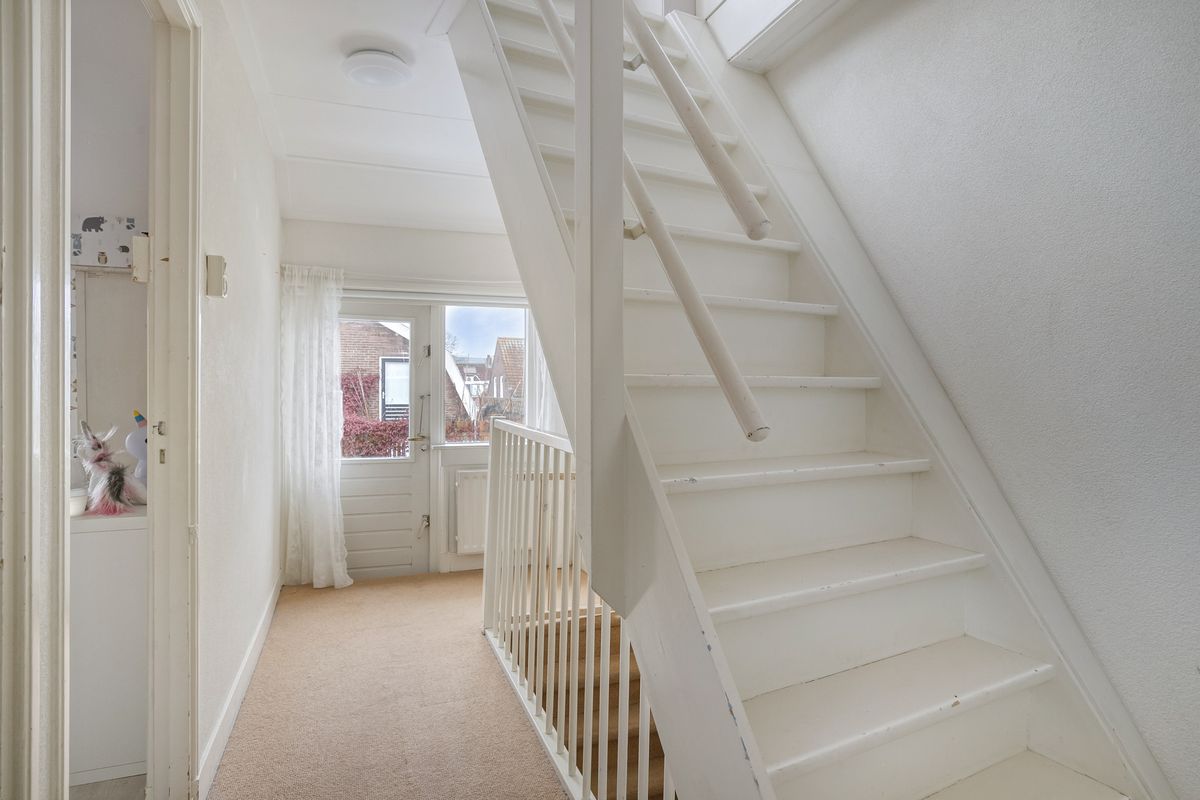 - Trapopgang, overloop en toegang tot de diverse vertrekken en trapopgang naar de tweede verdieping.