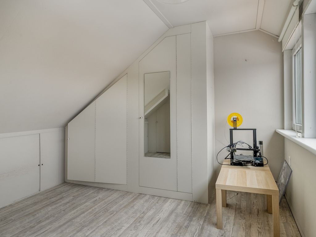 - Zolderkamer (ca. 4.02 m. x 3.35 m.) voorzien van vaste kast en opstelplaats C.V. installatie (2013).