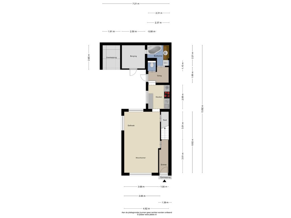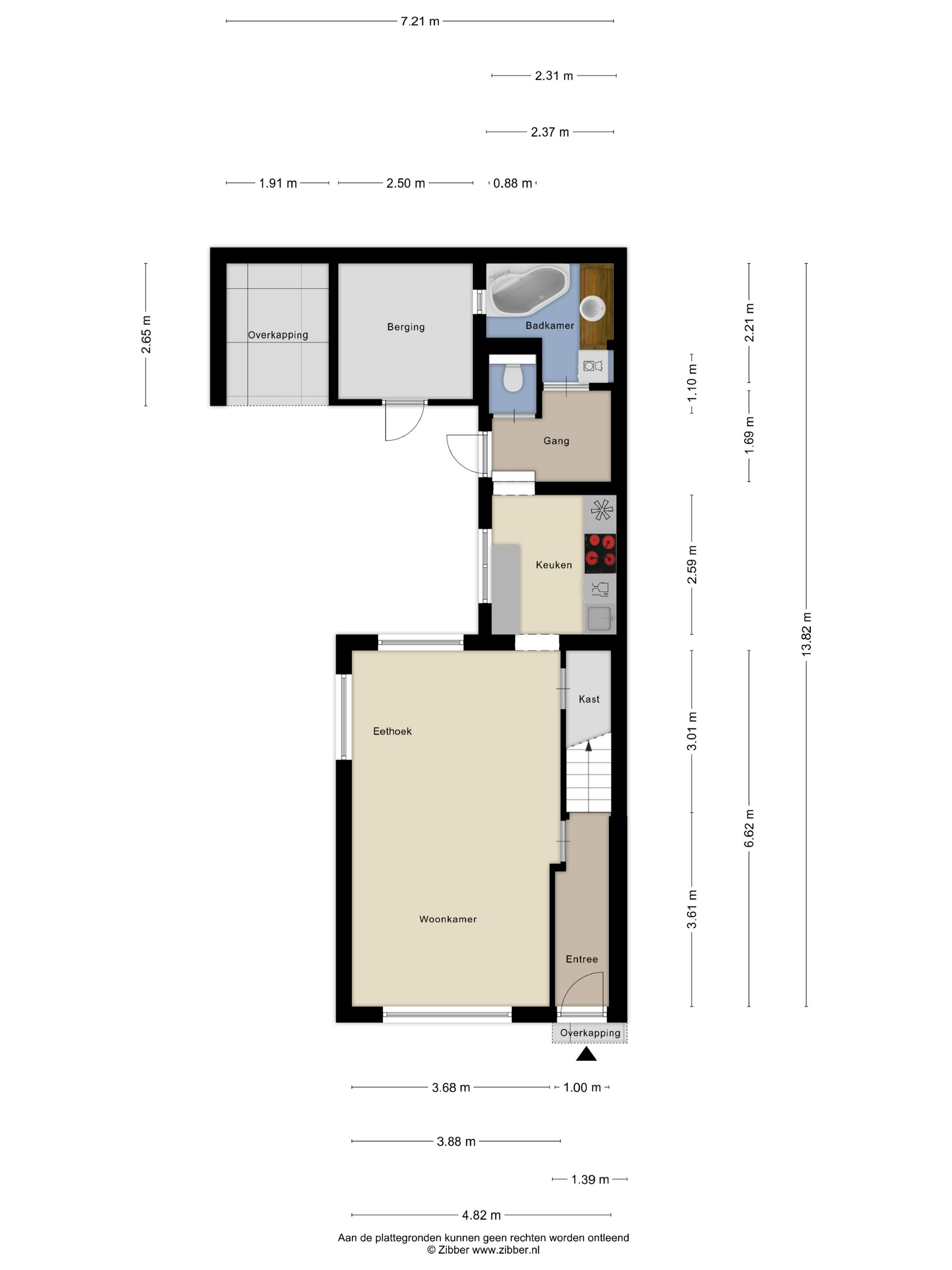 - Entree / hal, meterkast, trapopgang en toegang tot de woonkamer.
