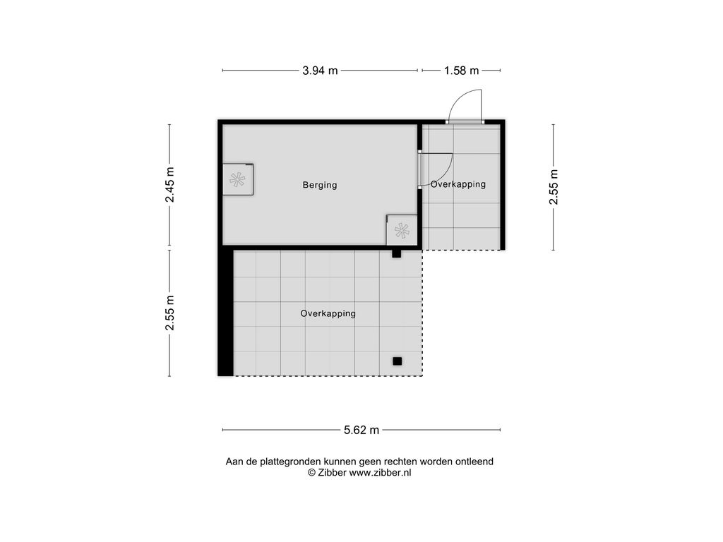- Overkapping I (ca. 3.94 m. x 2.55 m.).