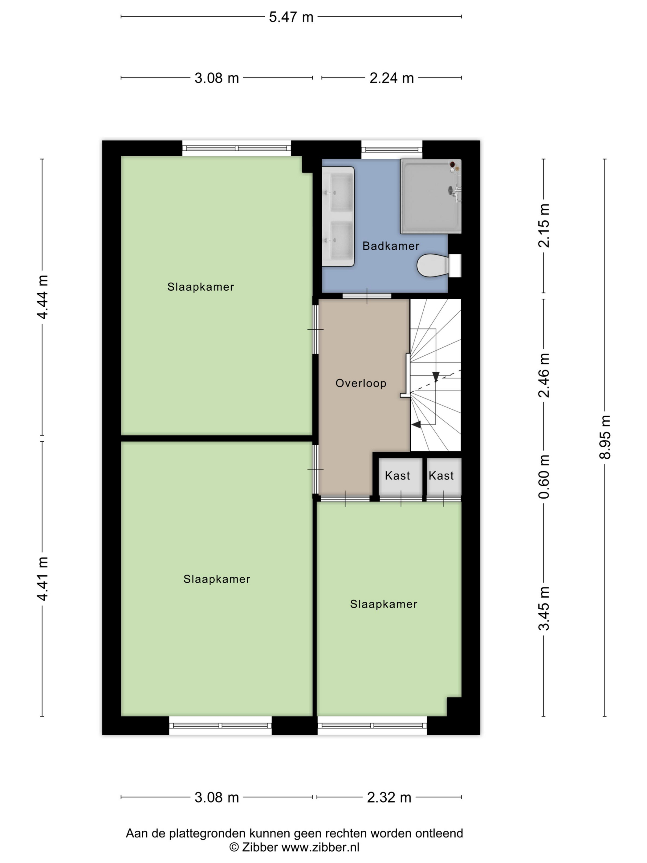 - Slaapkamer III (ca. 4.44 m. x 3.08 m.) gelegen aan de achterzijde van de woning en voorzien van een kastenwand.