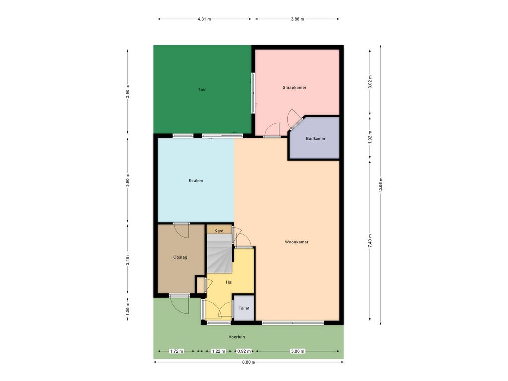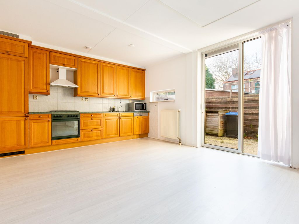 - Open keuken (ca. 4.31 m. x 3.90 m.) is gesitueerd in een rechte opstelling. Middels een schuifpui heb je toegang tot de achtertuin en middels een enkele deur heb je toegang tot de berging.