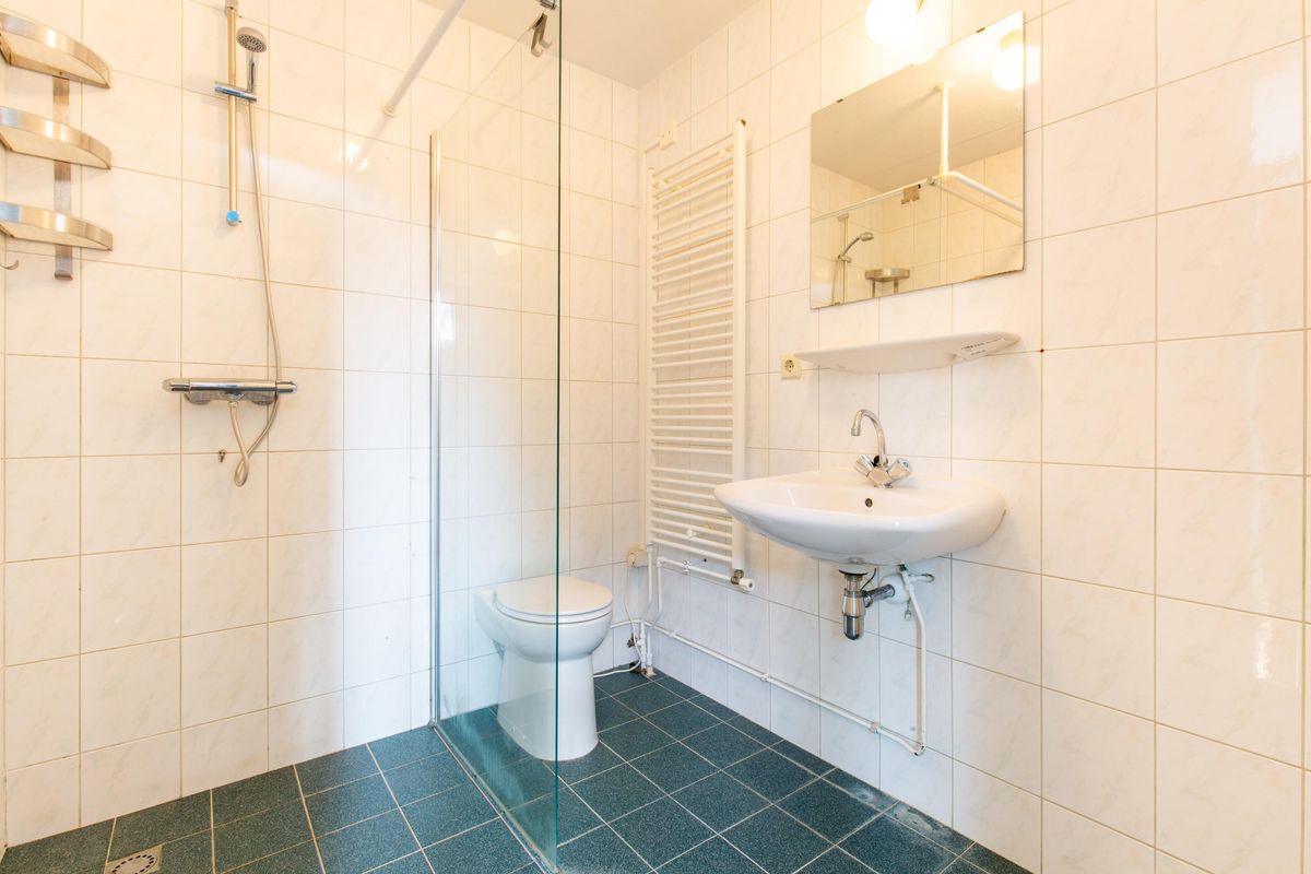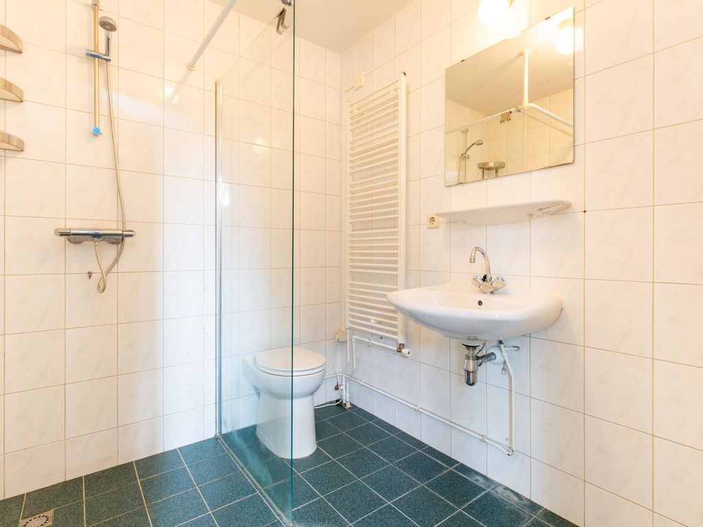 - Badkamer (ca. 2.00 m. x 1.92 m.) voorzien van een douche, toilet en wastafel.