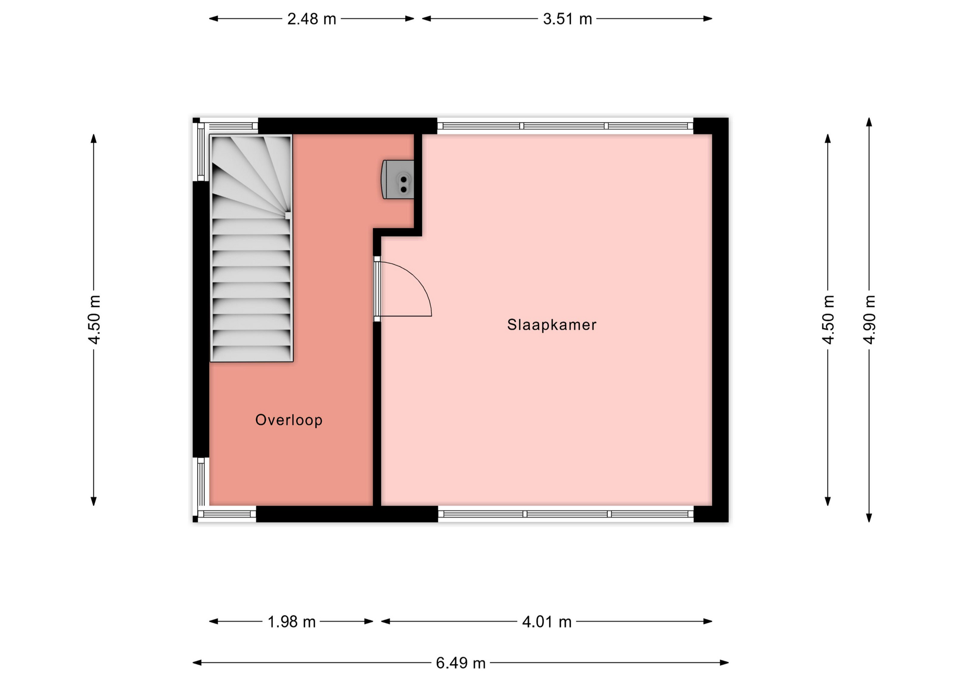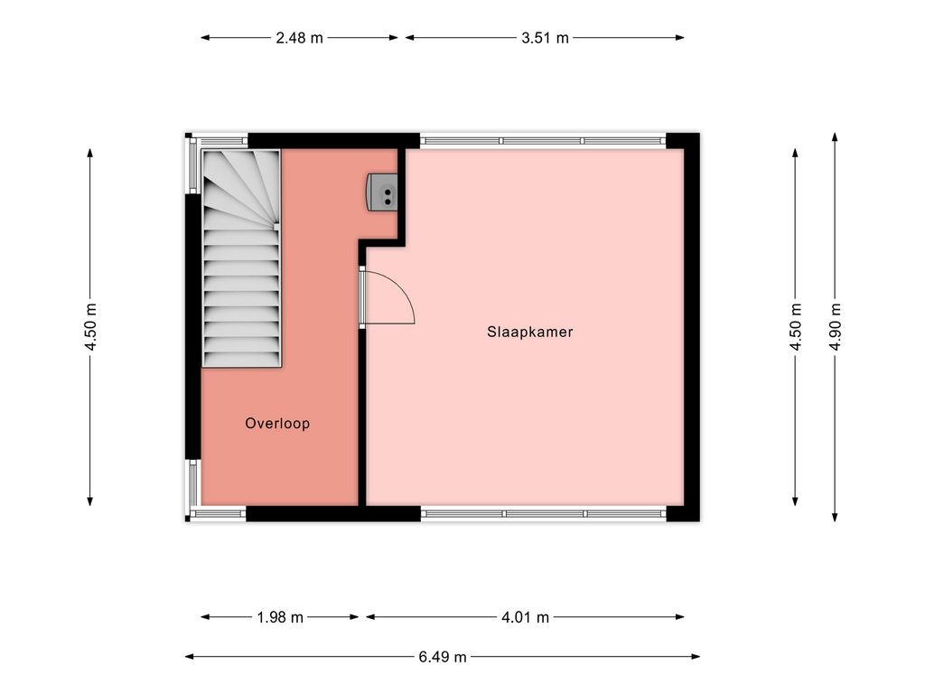 - Trapopgang, overloop voorzien van C.V. installatie (2022) en toegang tot de slaapkamer.