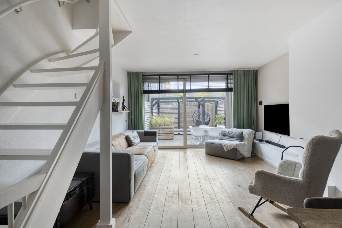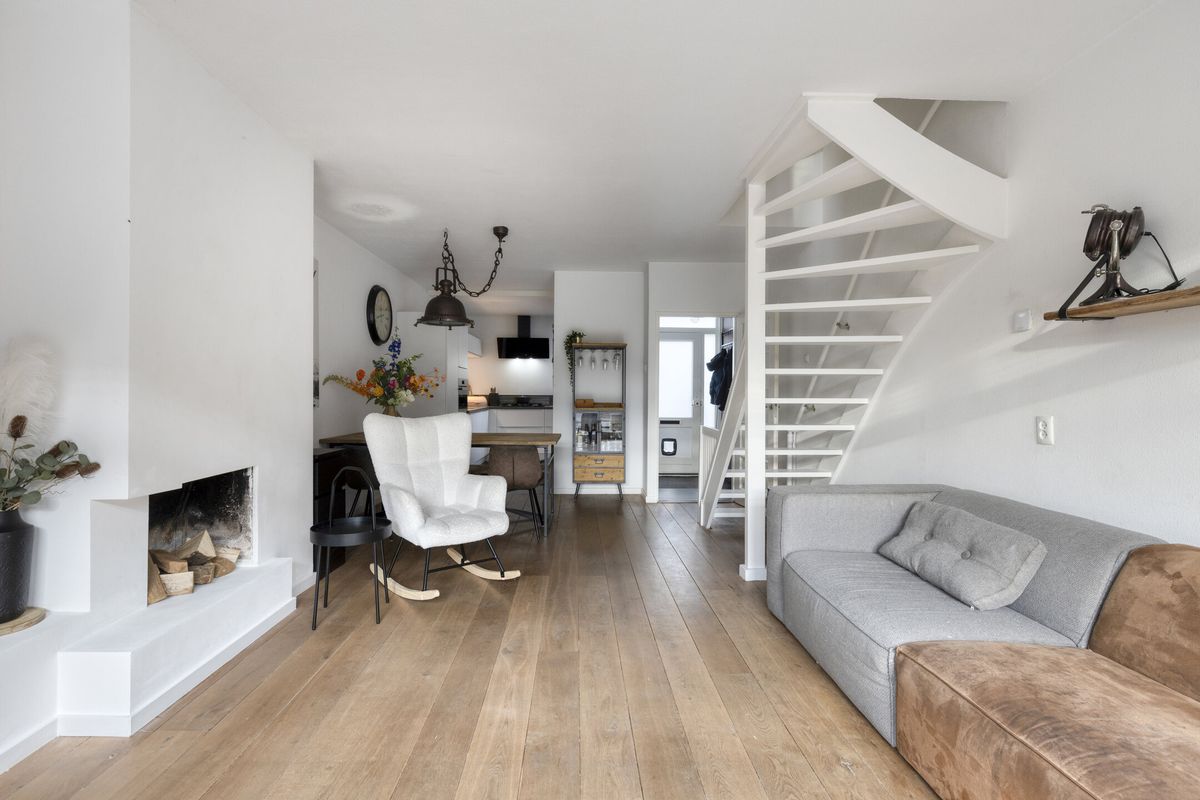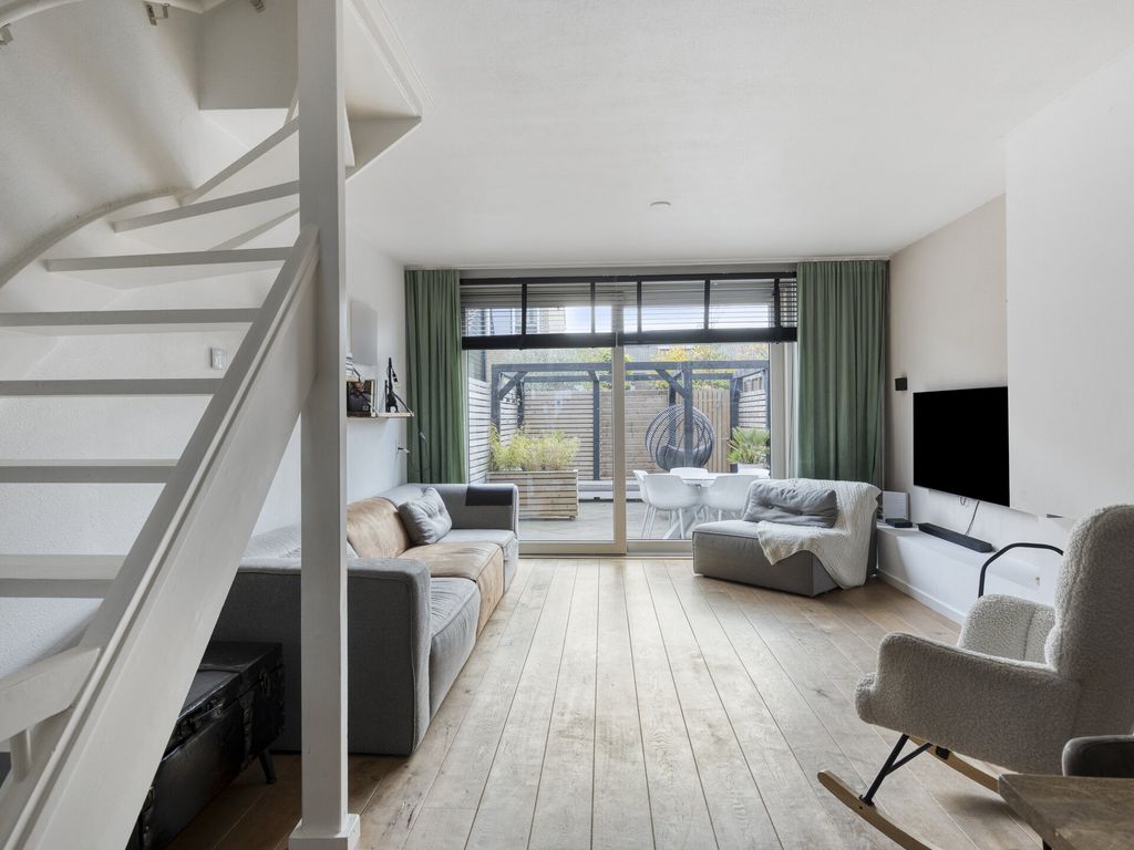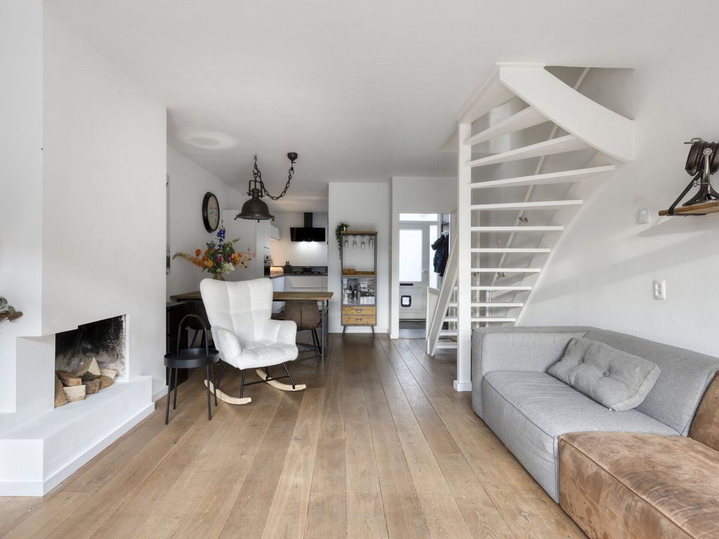- Woonkamer (ca. 6.57 m. x 4.12 m.) met trapopgang naar de eerste verdieping. Middels een schuifpui heb je toegang tot de achtertuin.