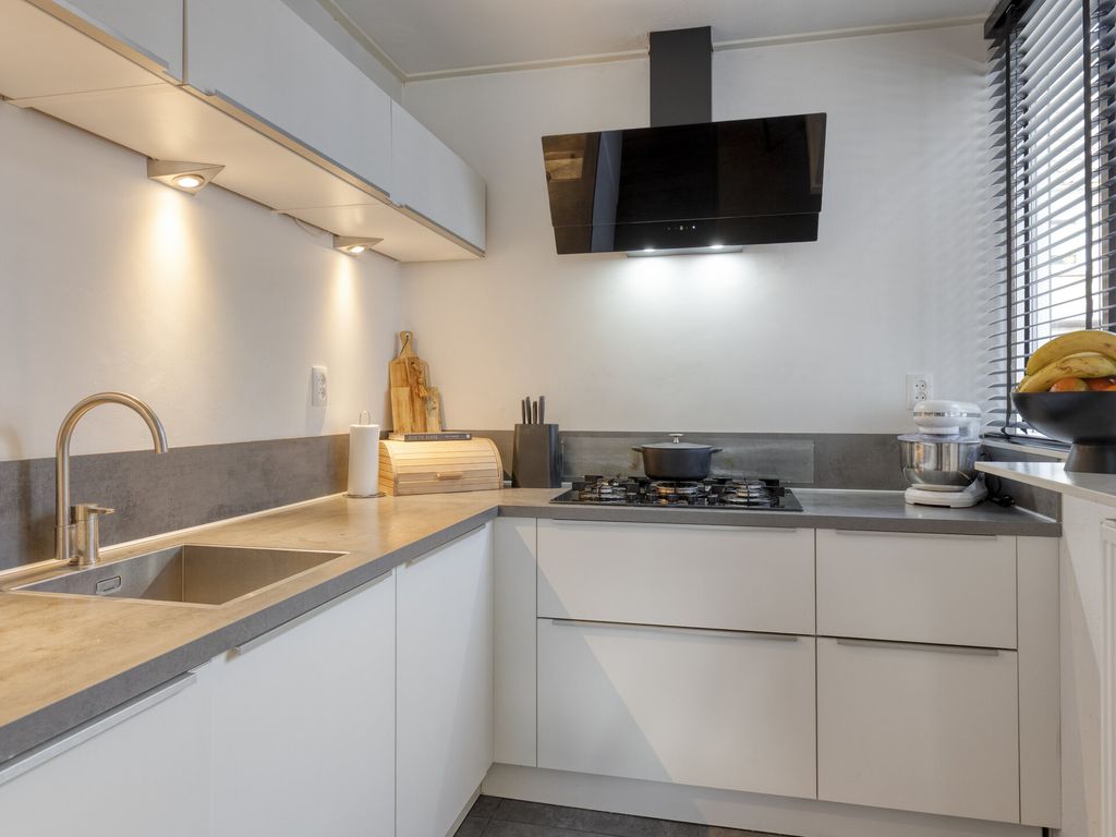 - Open moderne keuken (ca. 3.63 m. x 2.27 m.) is gesitueerd in een hoek vormige opstelling en voorzien van een koelkast/vriezer, 5 pits gaskookplaat, afzuigkap, vaatwasser en combimagnetron.