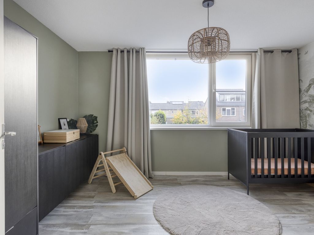 De woonkamer voelt licht en vrij dankzij de grote raampartij en uitzicht op de speeltuin achter het huis, zonder inkijk, maar met levendigheid op afstand. De keuken en badkamer zijn modern en met vier slaapkamers is er genoeg ruimte.