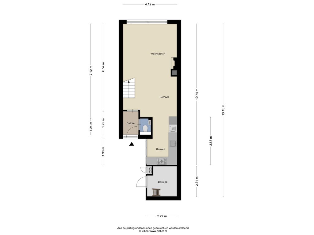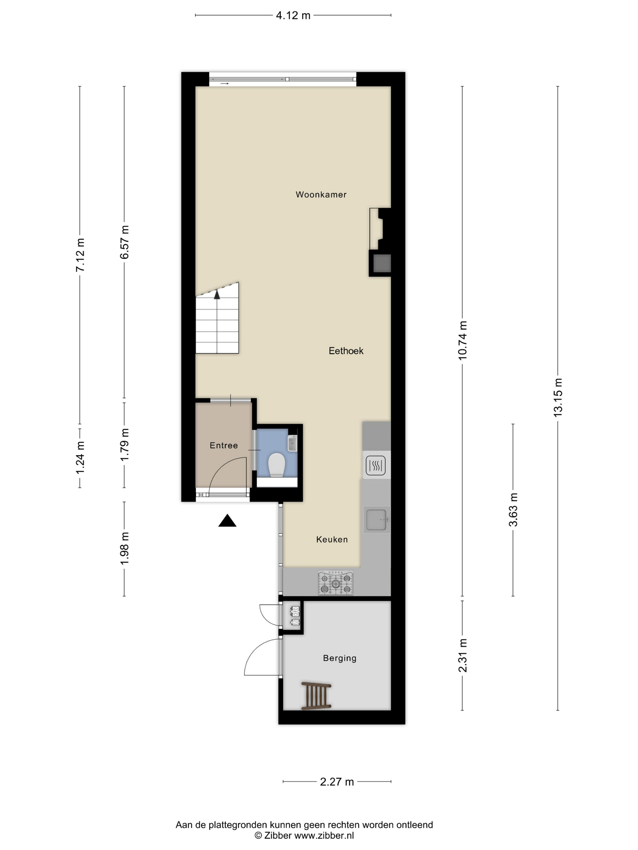 - Berging (ca. 2.31 m. x 2.27 m.) gelegen aan de voorzijde van de woning en voorzien van de meterkast.