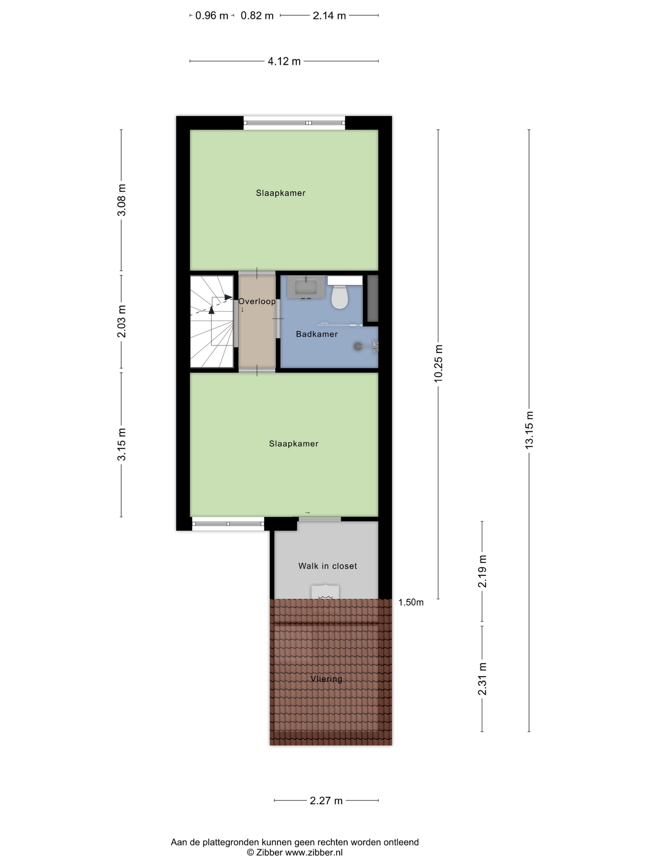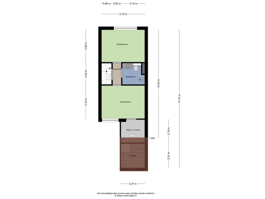 - Slaapkamer II (ca. 4.12 m. x 3.08 m.) gelegen aan de achterzijde van de woning.