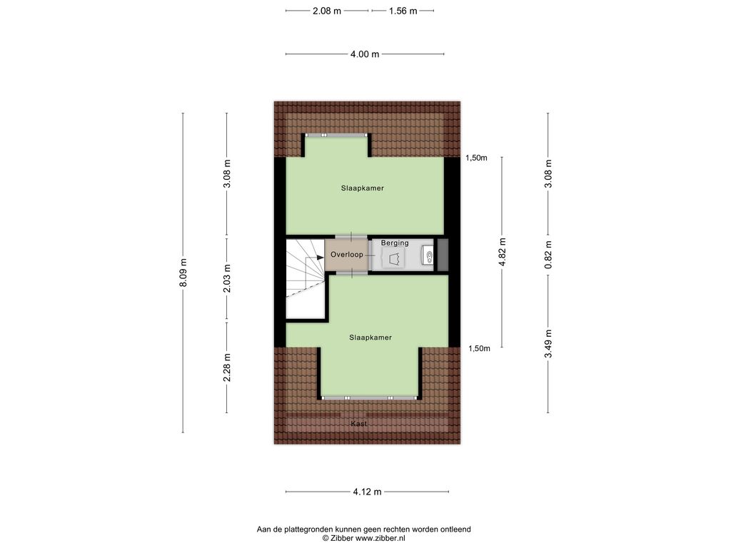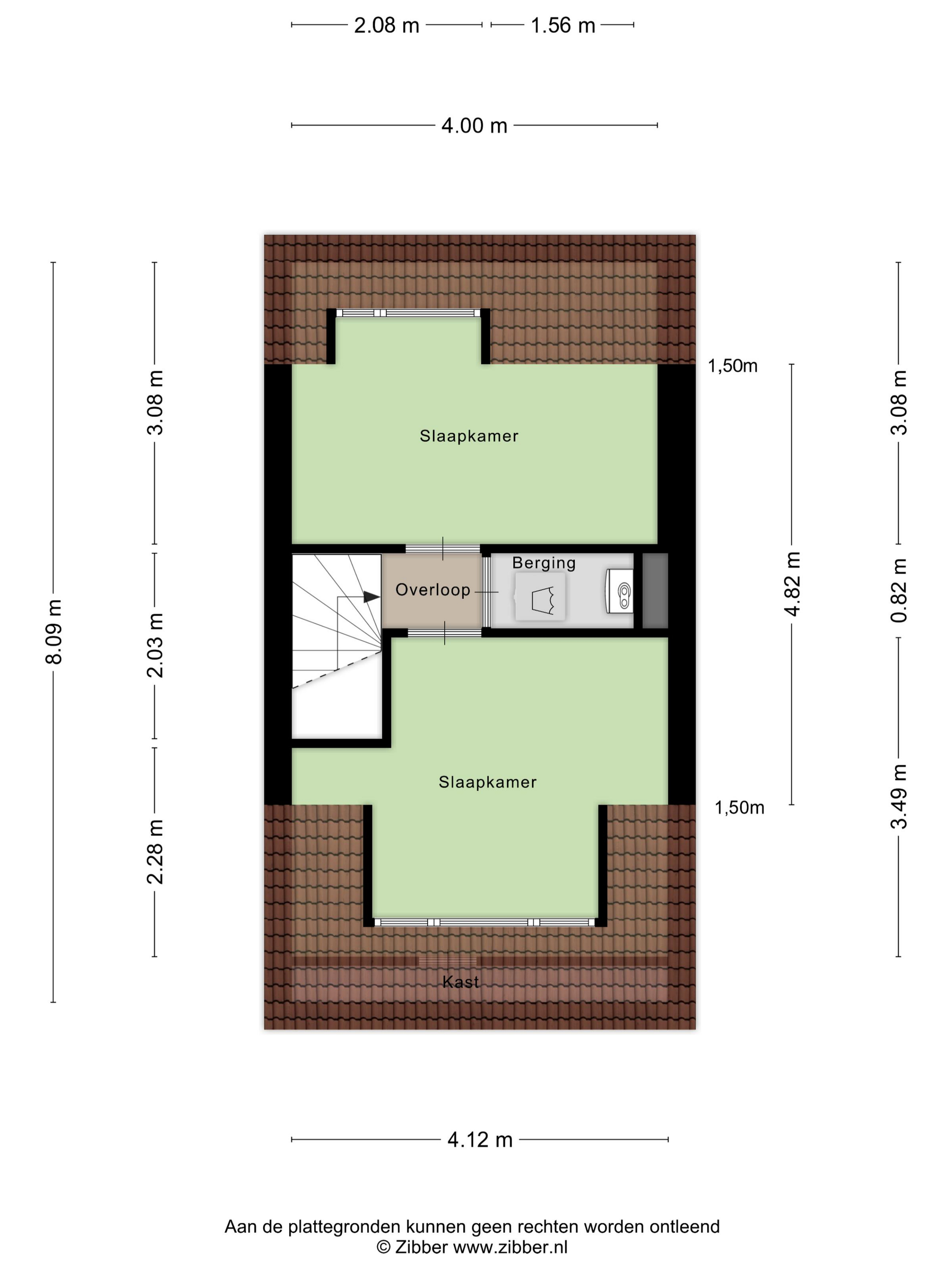 - Slaapkamer IV (ca. 4.00 m. x 3.08 m.) gelegen aan de achterzijde van de woning en voorzien van een dakkapel.