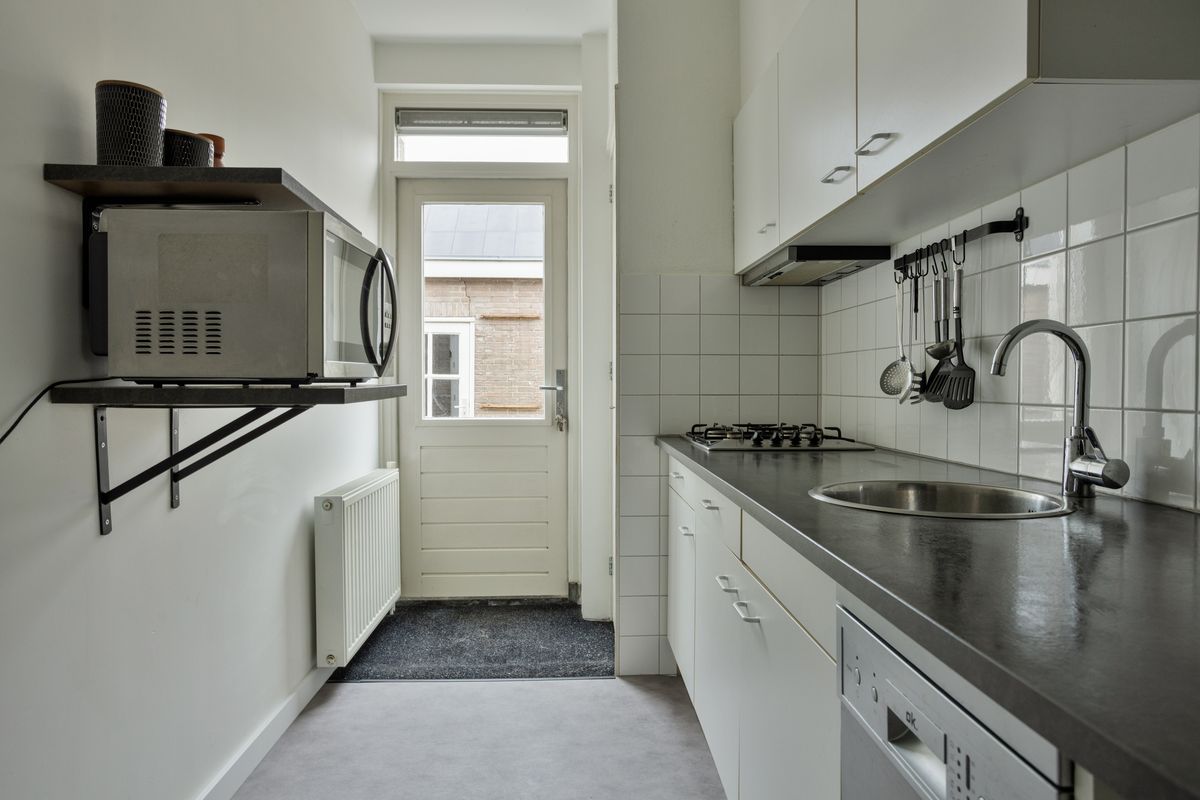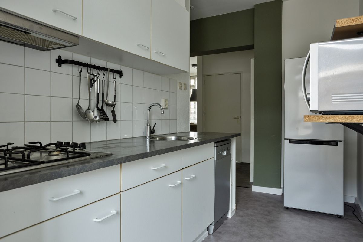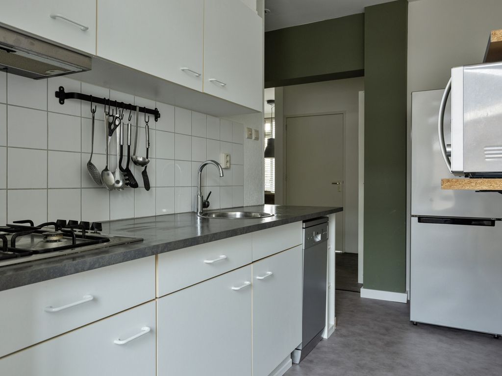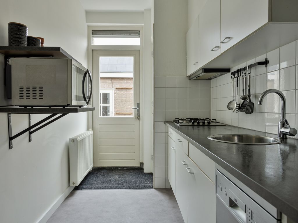 - Keuken (ca. 4.28 m. x 1.11 m.) gesitueerd in een rechte opstelling en voorzien van een gaskookplaat, vaatwasser en C.V. installatie. Vanuit de keuken heb je toegang tot de achtertuin.