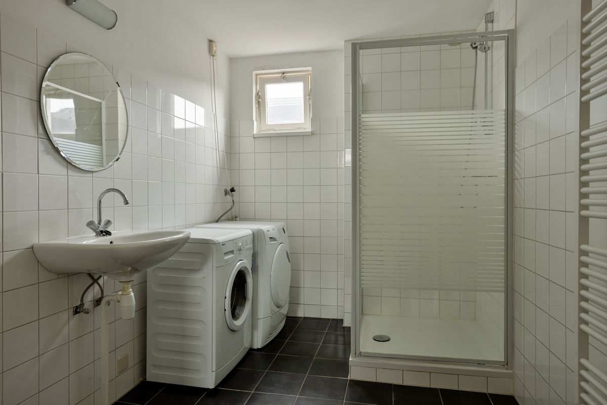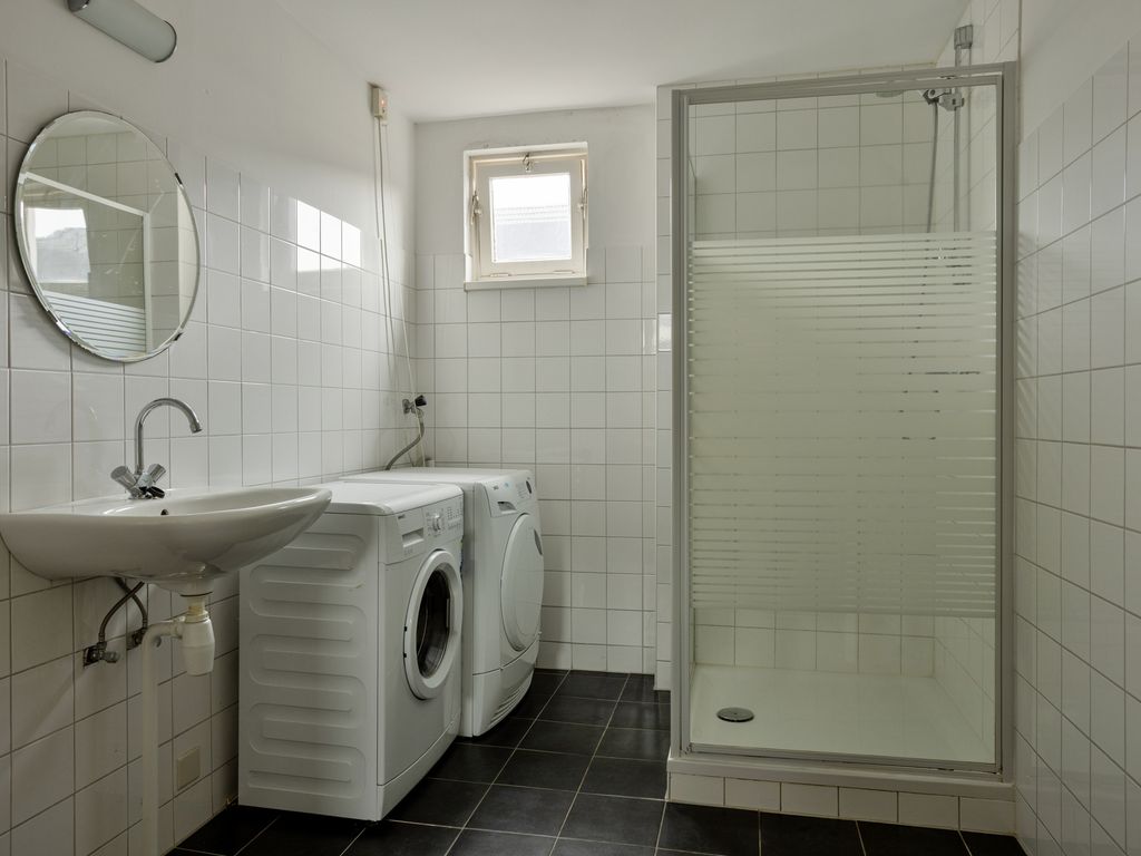 - Badkamer (ca. 3.22 m. x 2.06 m.) gelegen aan de achterzijde van de woning en voorzien van een douche, wastafel en aansluiting voor de wasmachine.