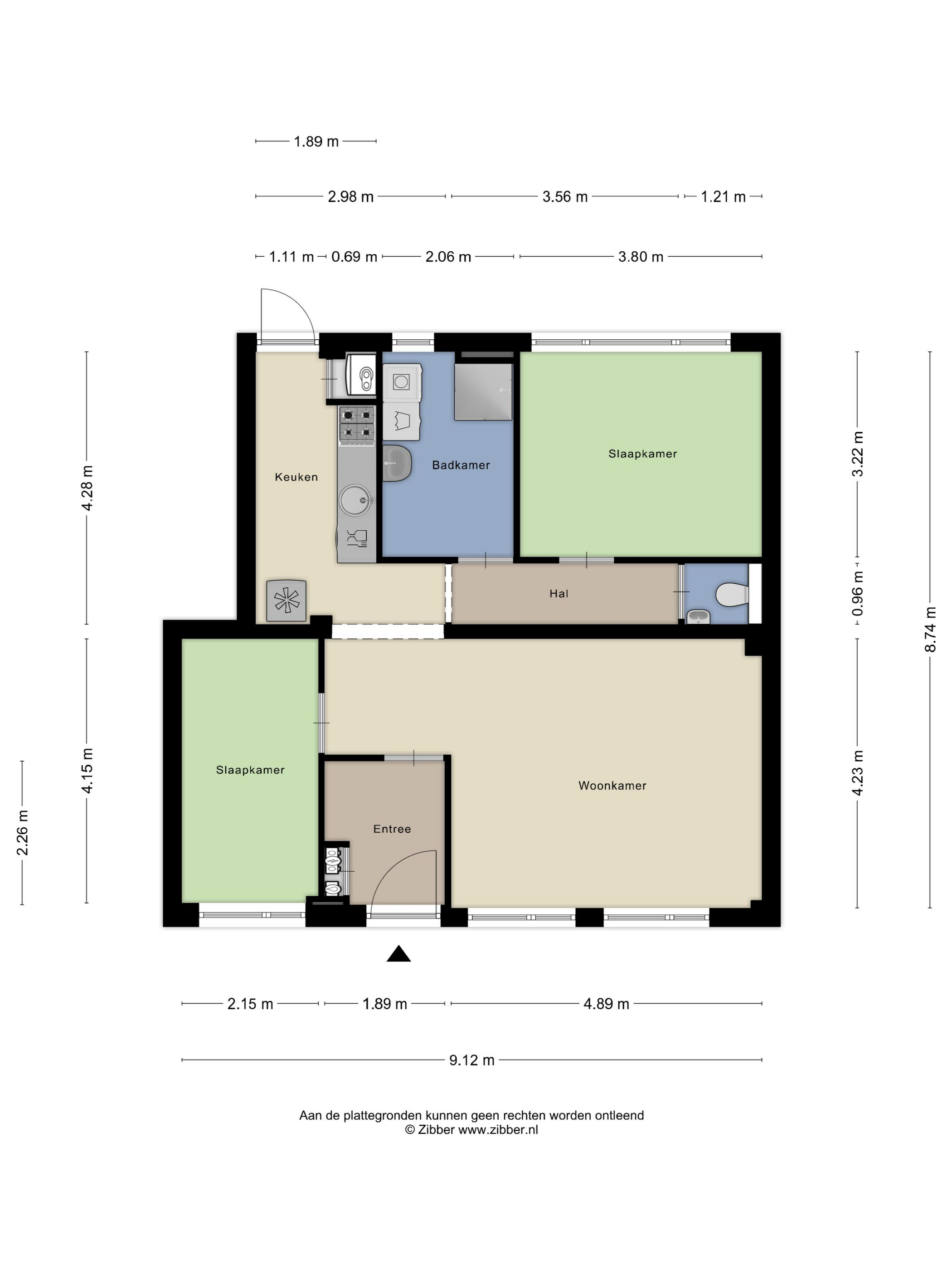- Woonkamer (ca. 4.89 m. x 4.23 m.).
