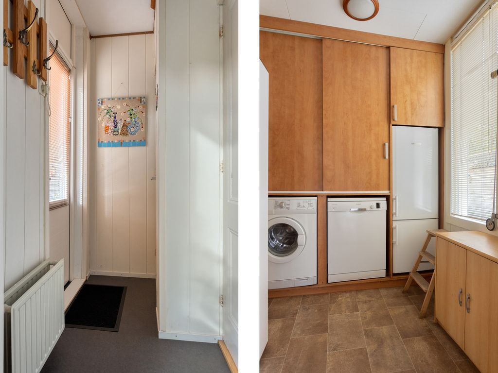 - Bijkeuken (ca. 1.98 m. x 1.52 m.) voorzien van een aansluiting voor de wasmachine en vaatwasser.