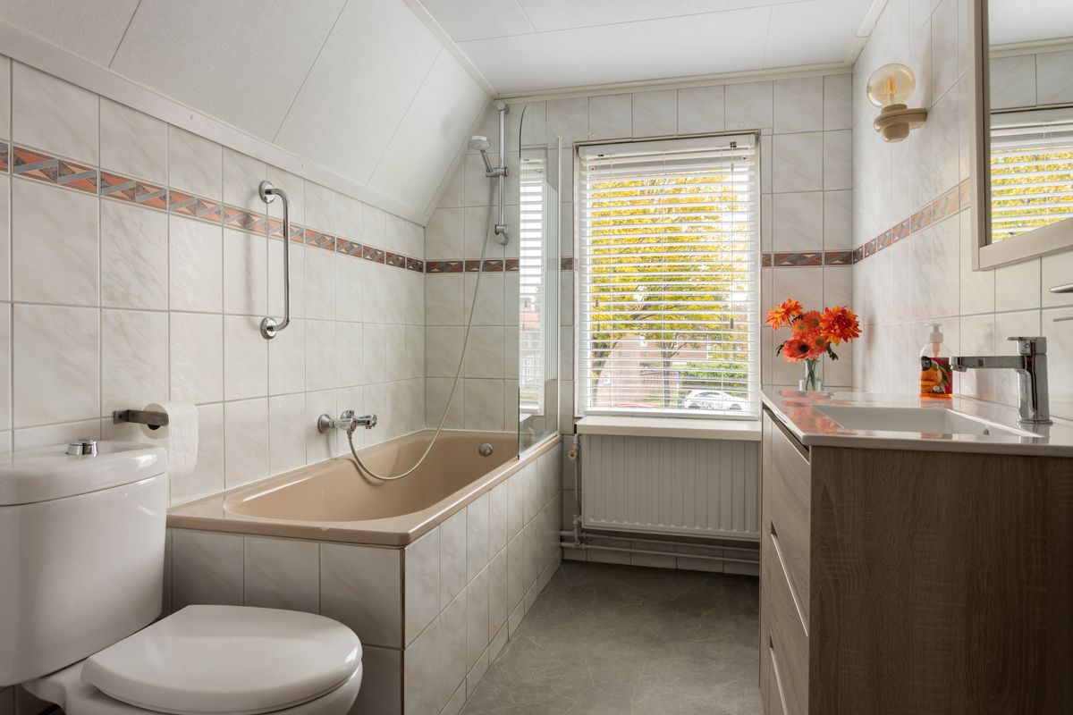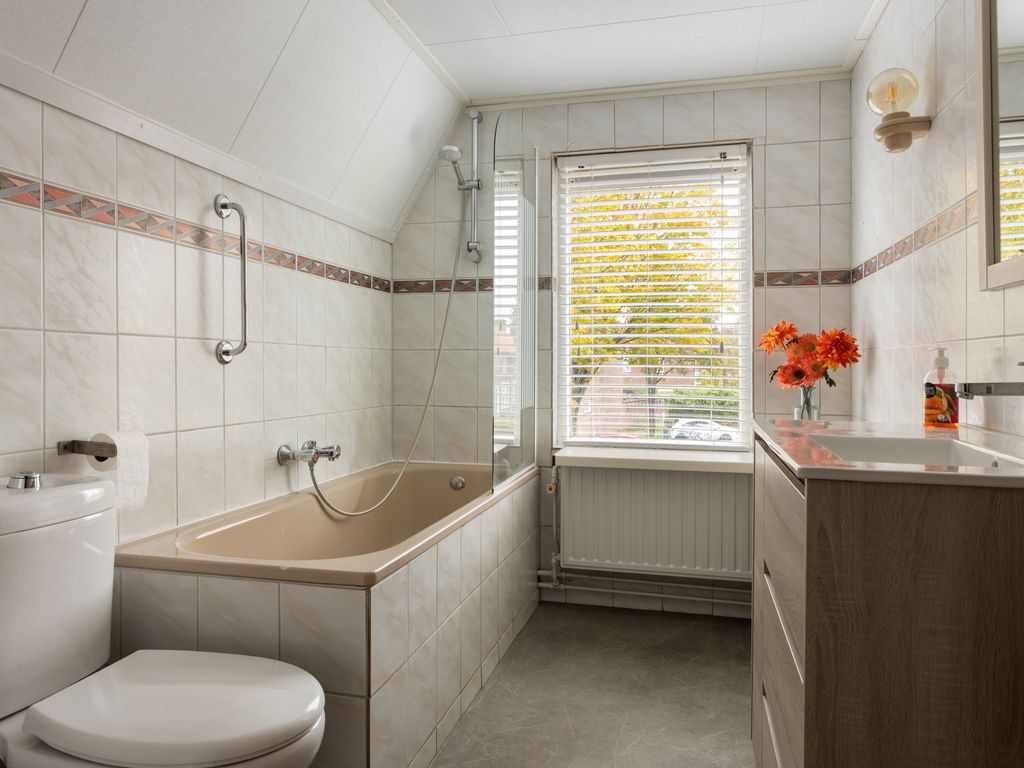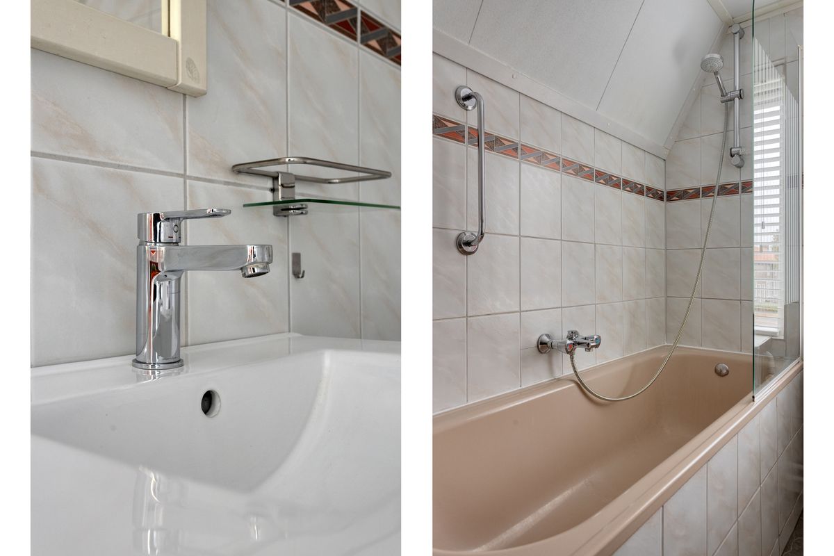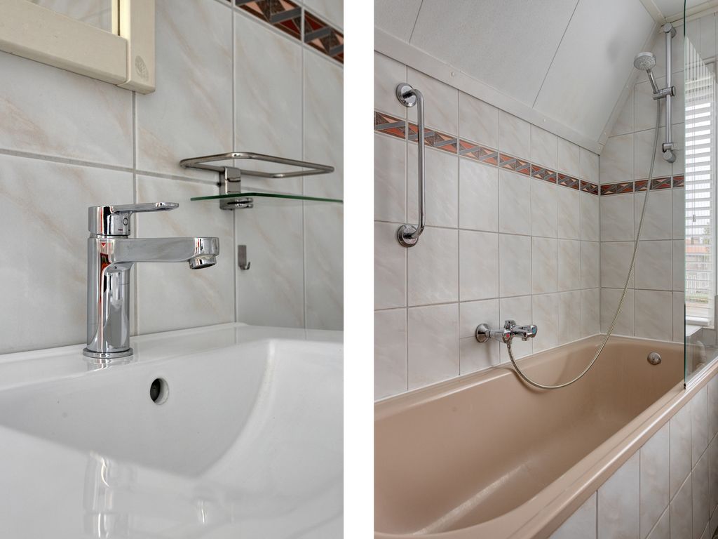 - Badkamer (ca. 2.95 m. x 1.93 m.) gelegen aan de achterzijde van de woning en voorzien van een ligbad, wastafel, toilet en vaste kast.