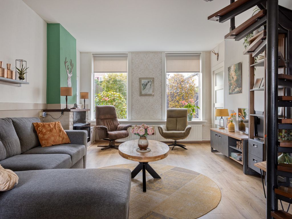 - Woonkamer (ca. 7.98 m. x 3.67 m.) met trapopgang naar de eerste verdieping.