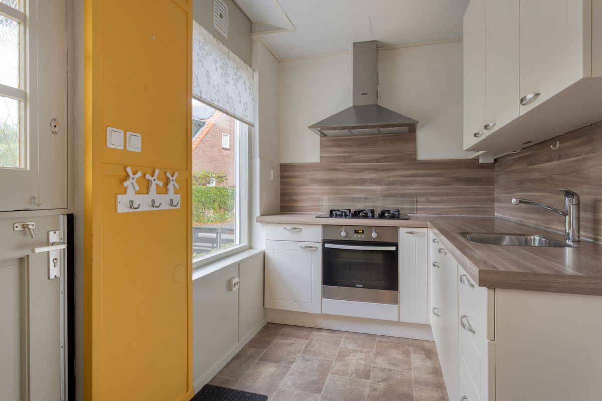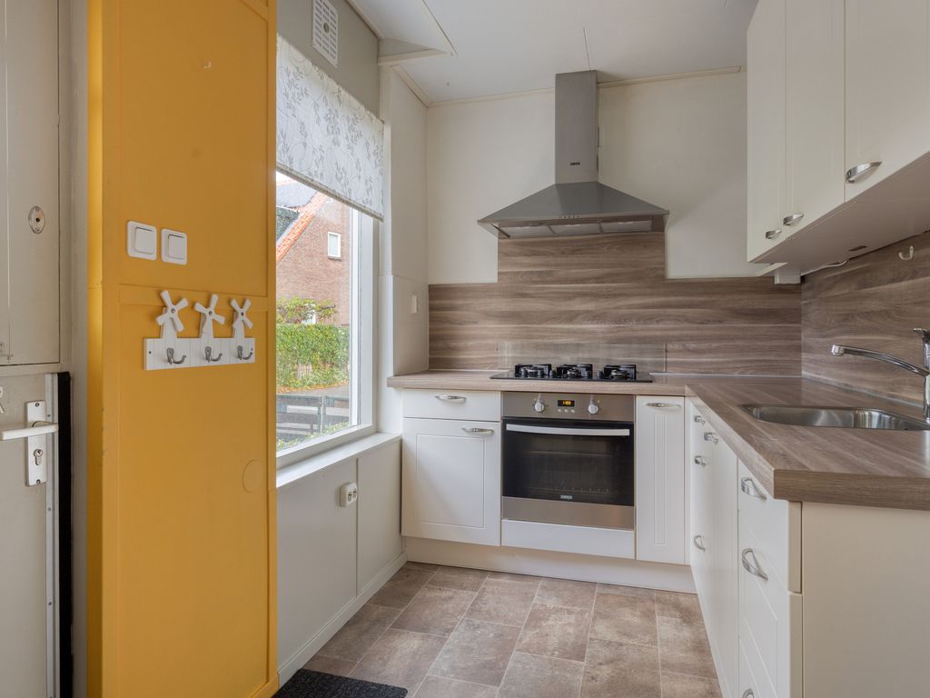 - Dichte keuken (ca. 3.13 m. x 1.98 m.) gesitueerd in een hoek opstelling en voorzien van een afzuigkap, gaskookplaat en oven. Vanuit de keuken heb je toegang tot de tuin.