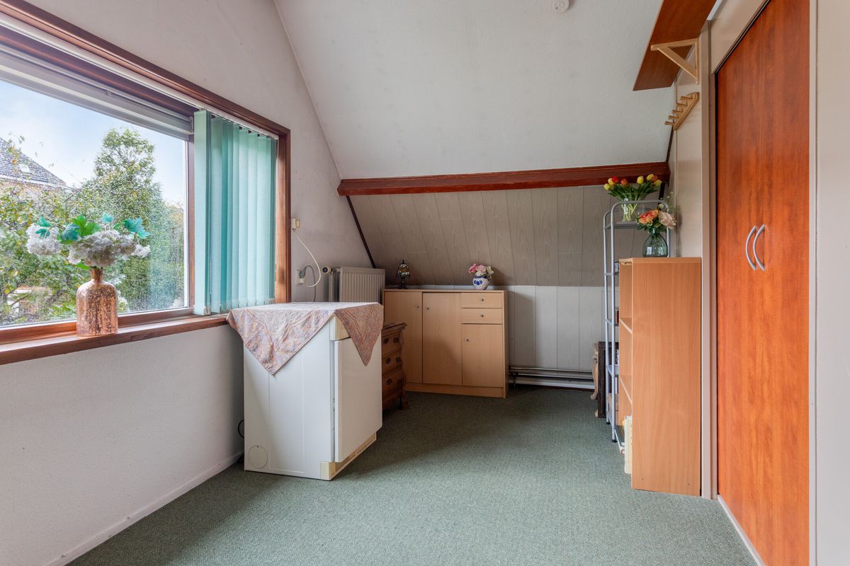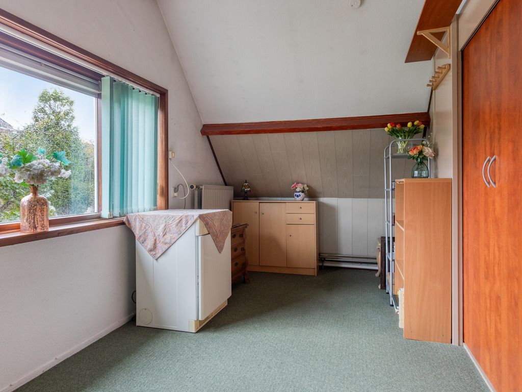 - Slaapkamer II (ca. 2.95 m. x 2.87 m.) gelegen aan de achterzijde van de woning. Vanaf deze slaapkamer heb je toegang tot de bergzolder.