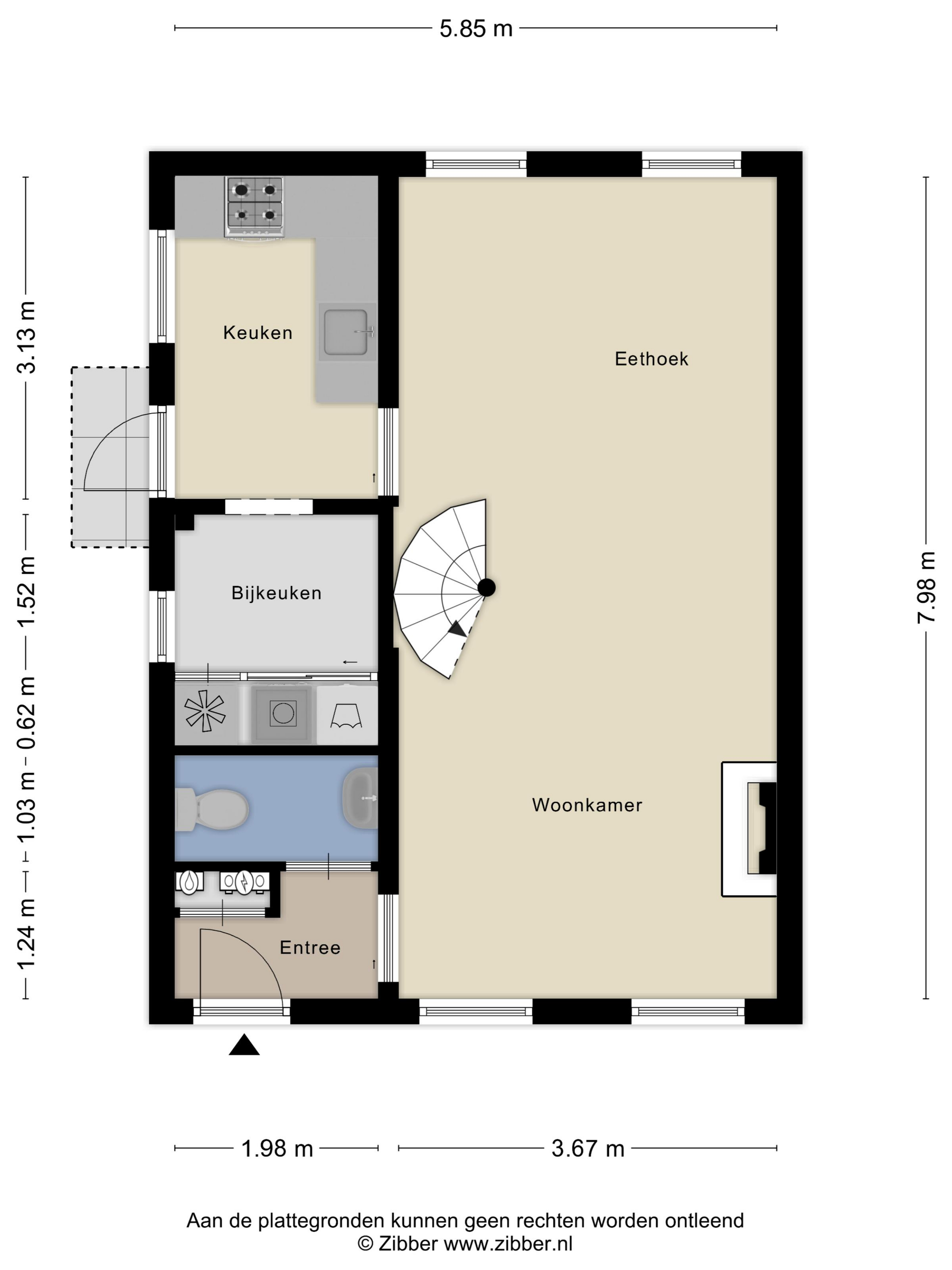 - Entree/hal voorzien van meterkast, toiletruimte en toegang tot de woonkamer.
